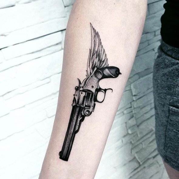 В сфере тату существует масса популярных изображений, одним из таких является изображение револьвера, которое появилось не так уж давно в данном искусстве.