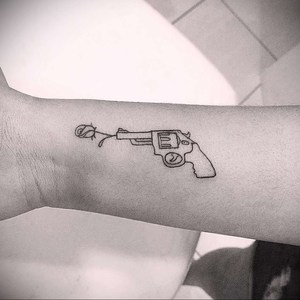 - Часто тату револьвера не несет в себе ни положительной ни негативной нагрузки, а создано для украшения тела. С помощью данного рисунка на теле, человек выделяется и обращает внимание к своей персоне.
