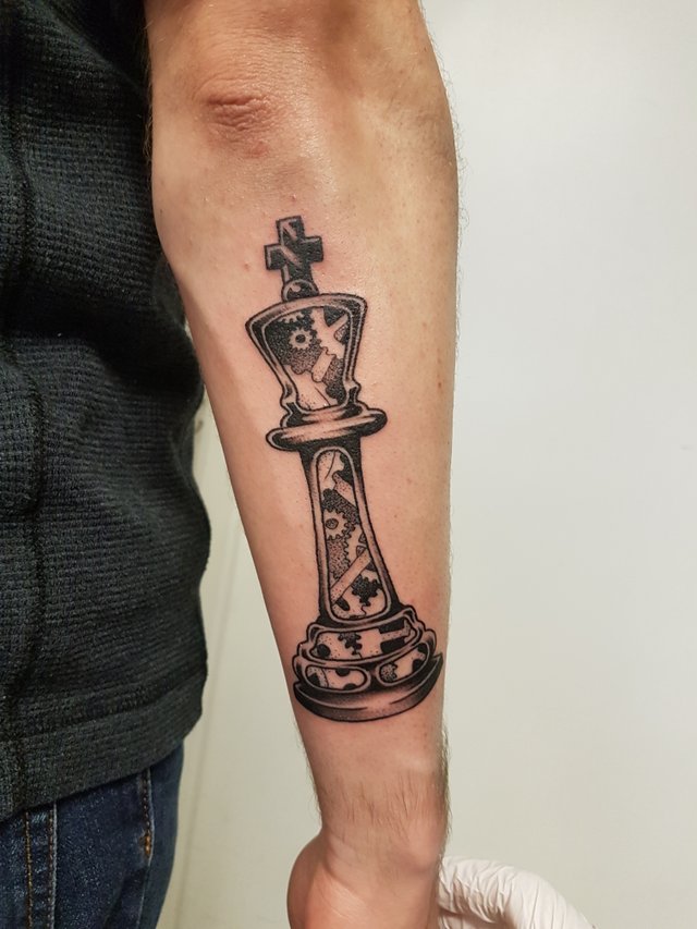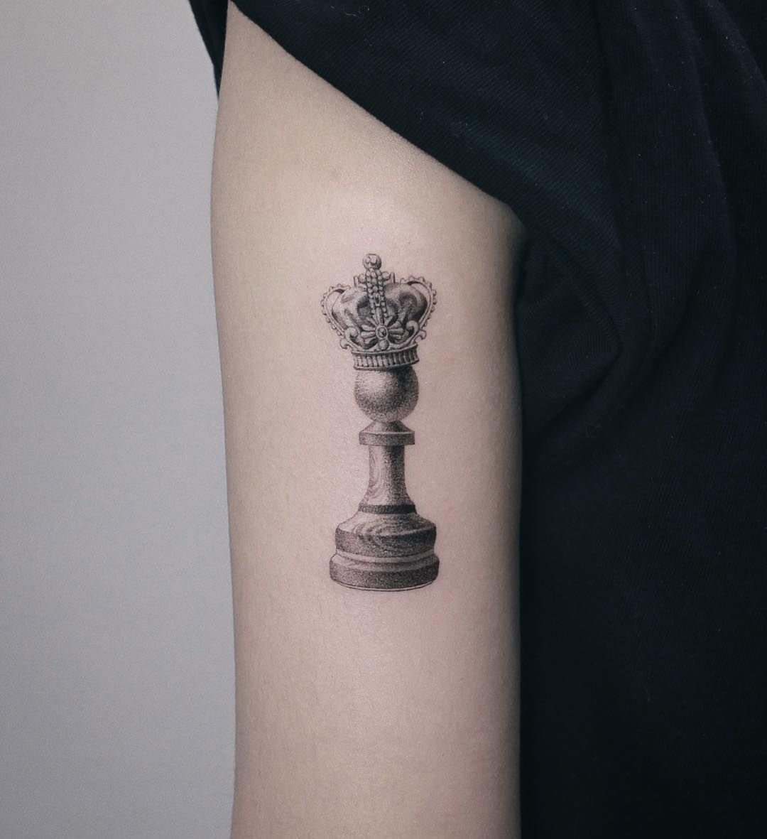 Король - это самая основная и главная фигура на шахматной доске. Обладатели татуировки с данной фигурой достаточно властные и сильные духом люди. Это прирожденные лидеры, которые всегда добиваются поставленных целей. В социуме обладатели татуировки с изображением короля привыкли быть в центре внимания, и могут очень часто даже навязывать свое мнение другим людям.