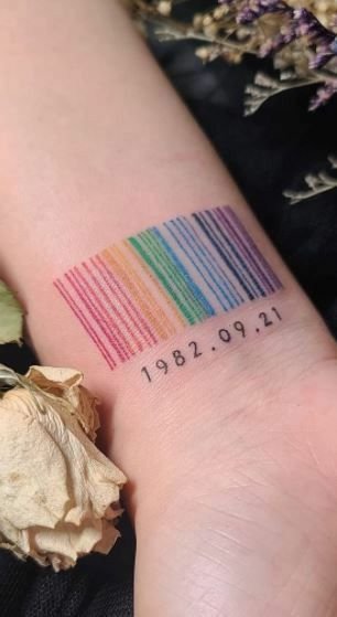 - Набивая тату штрихкода, внизу полос часто изображают важную для человека дату, к примеру: день его рождения, день рождение ребенка, близкого человека, дату свадьбы и так далее.