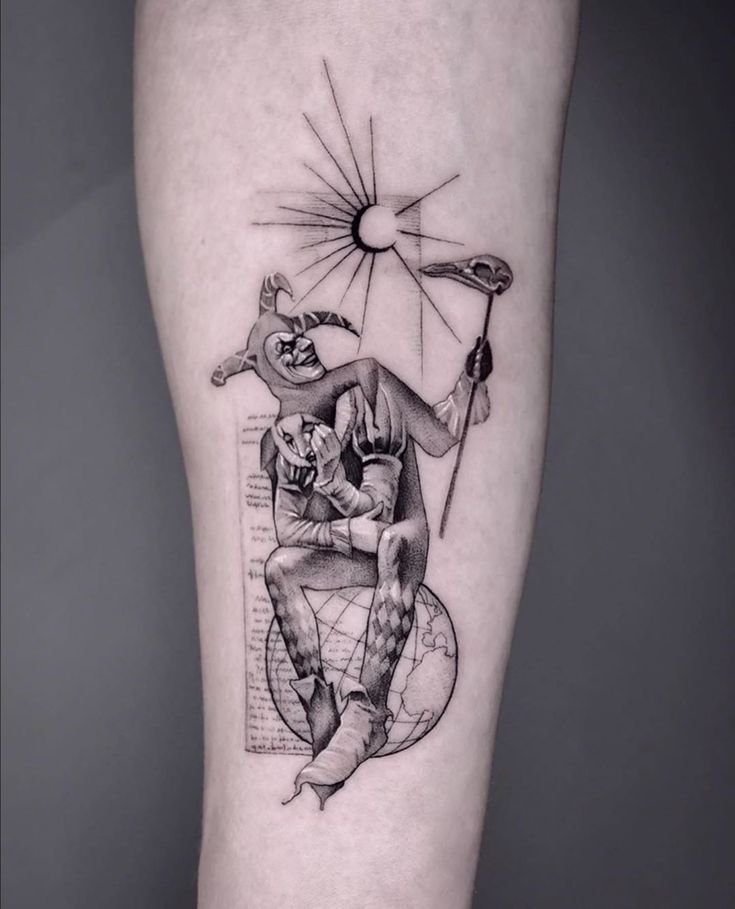 - Так же, тату шута подчеркивает прозорливость человека. Человек с татуировкой шута нередко может выступать в роли обманчивой, скрытной, хитрой личности.