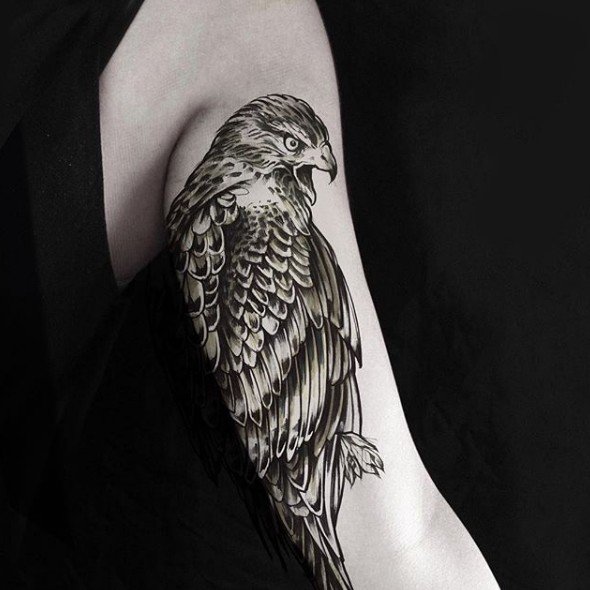 Тату сокола является универсальным, его выбирают как представители сильного пола, так и женщины.