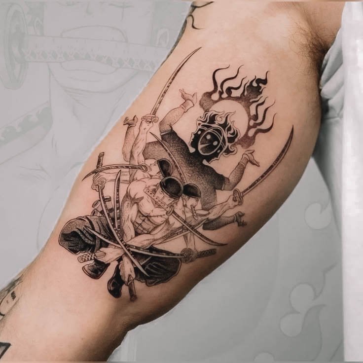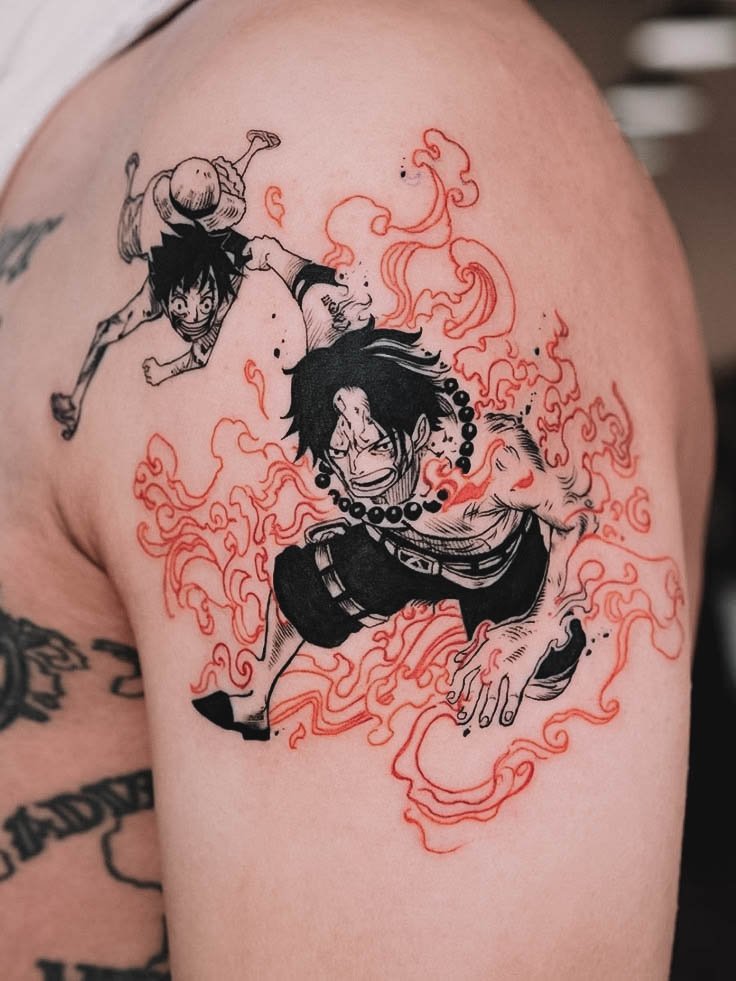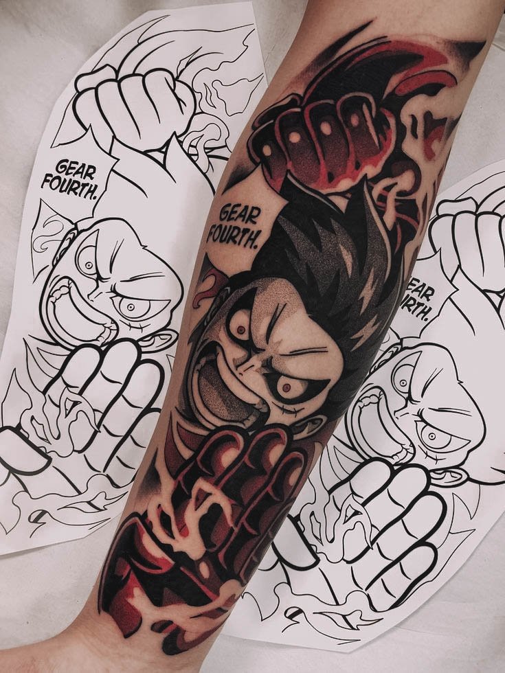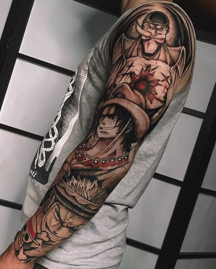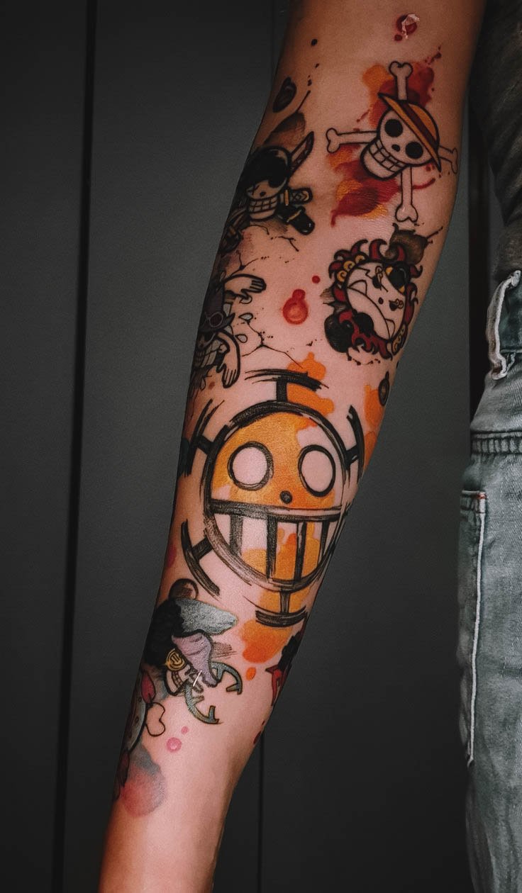 Для мужчин татуировки по мотивам Ван Пис символизируют мощь, решительность и стремление к победе.
