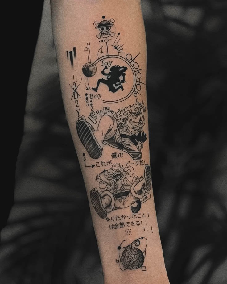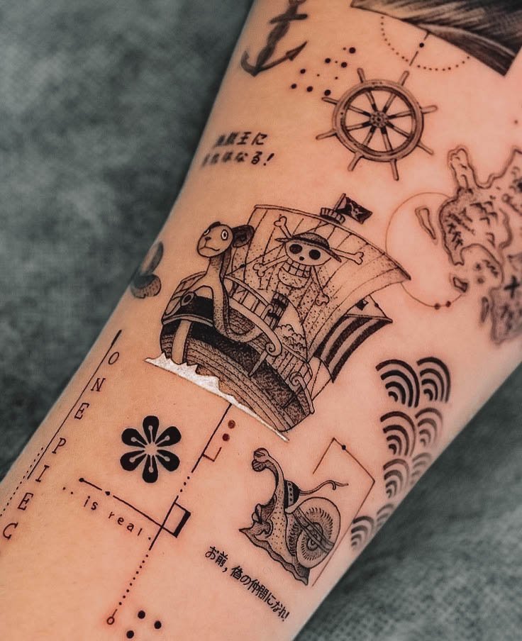 Татуировка в стиле Ван Пис может символизировать дружбу, влечение к свободе и готовность преодолевать любые трудности. Она отражает характер человека, его любовь к приключениям и желание идти своим путем, несмотря на преграды.