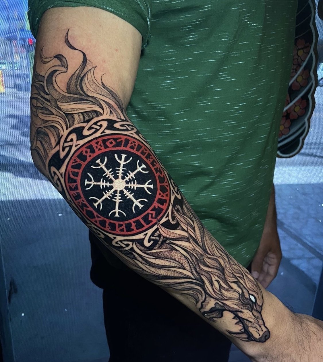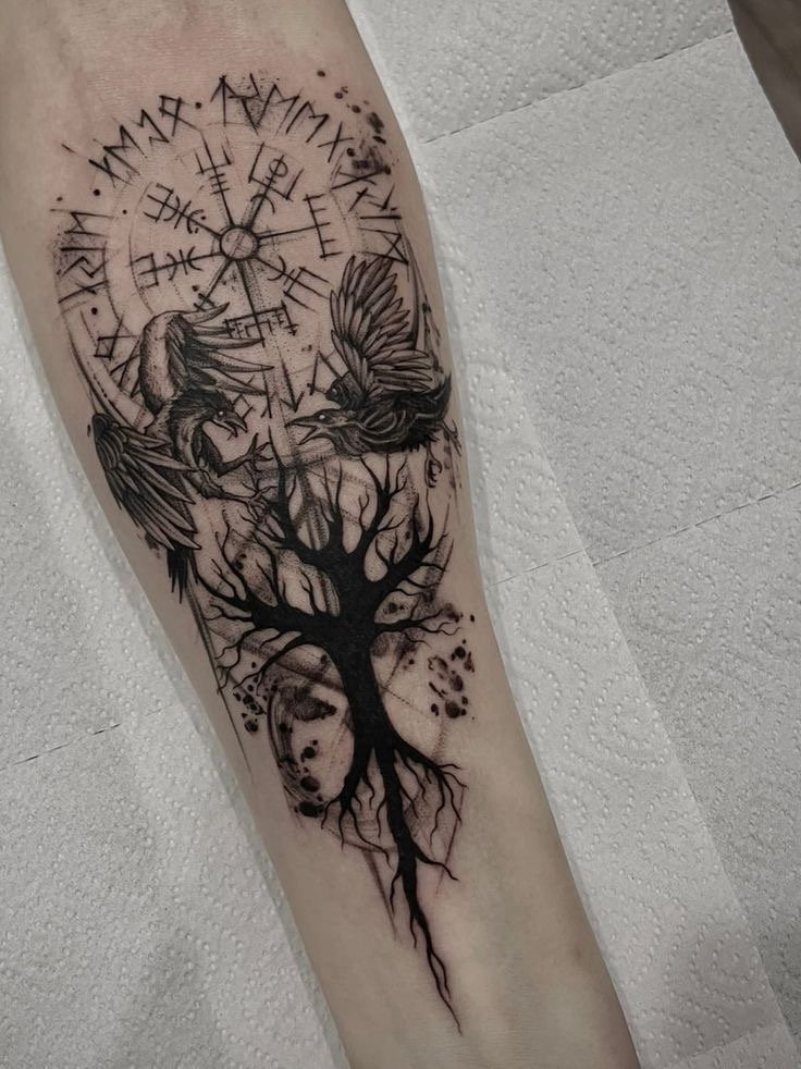 Татуировка с Вегвизиром – это не просто стильное изображение, а мощный магический элемент, который несёт в себе глубокое значение.