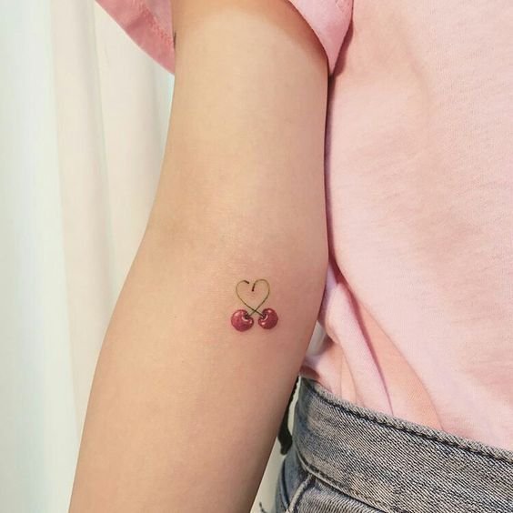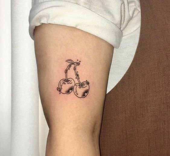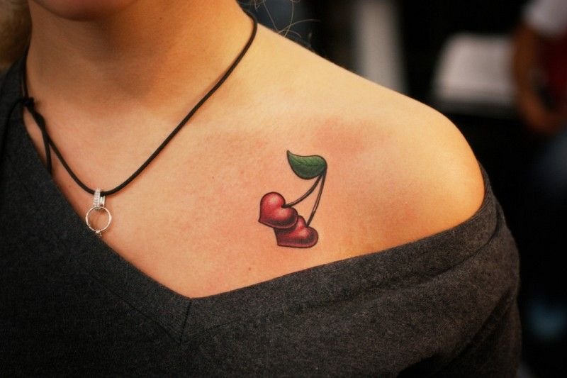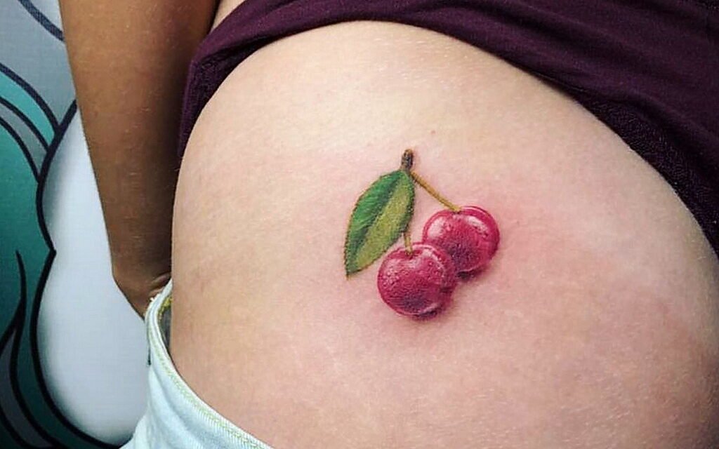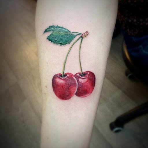 - Тату с изображенными ягодами вишенки обычно говорит о невинности, нежности, осторожности.