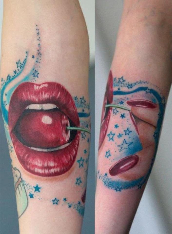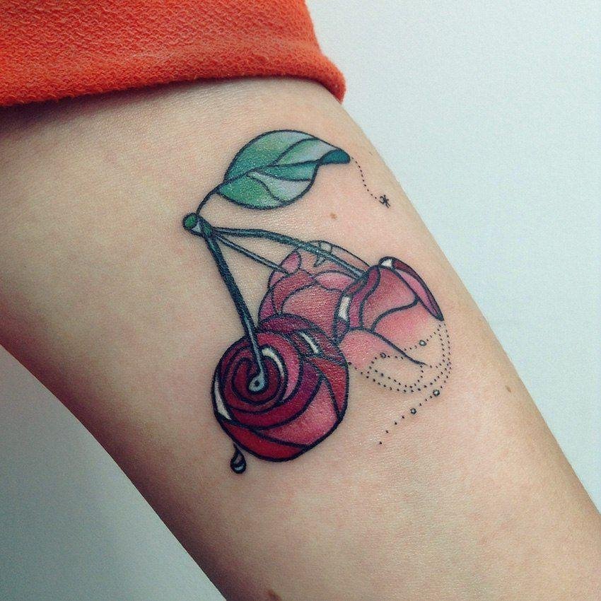 - Тату спелой вишни обычно выбирают женщины зрелые, которые уже имеют жизненный опыт.