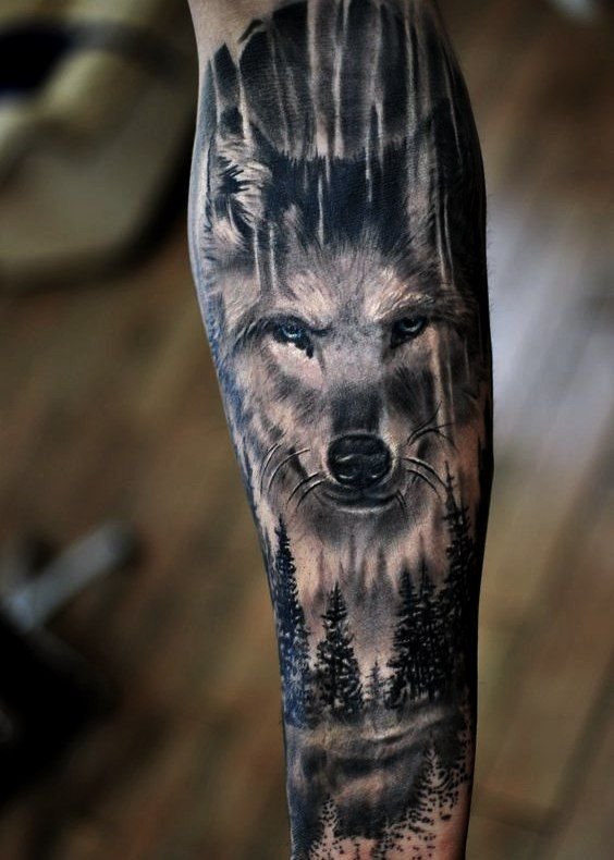 Мужчины чаще всего выбирают тату волка, чтобы подчеркнуть свою мудрость и решительность.