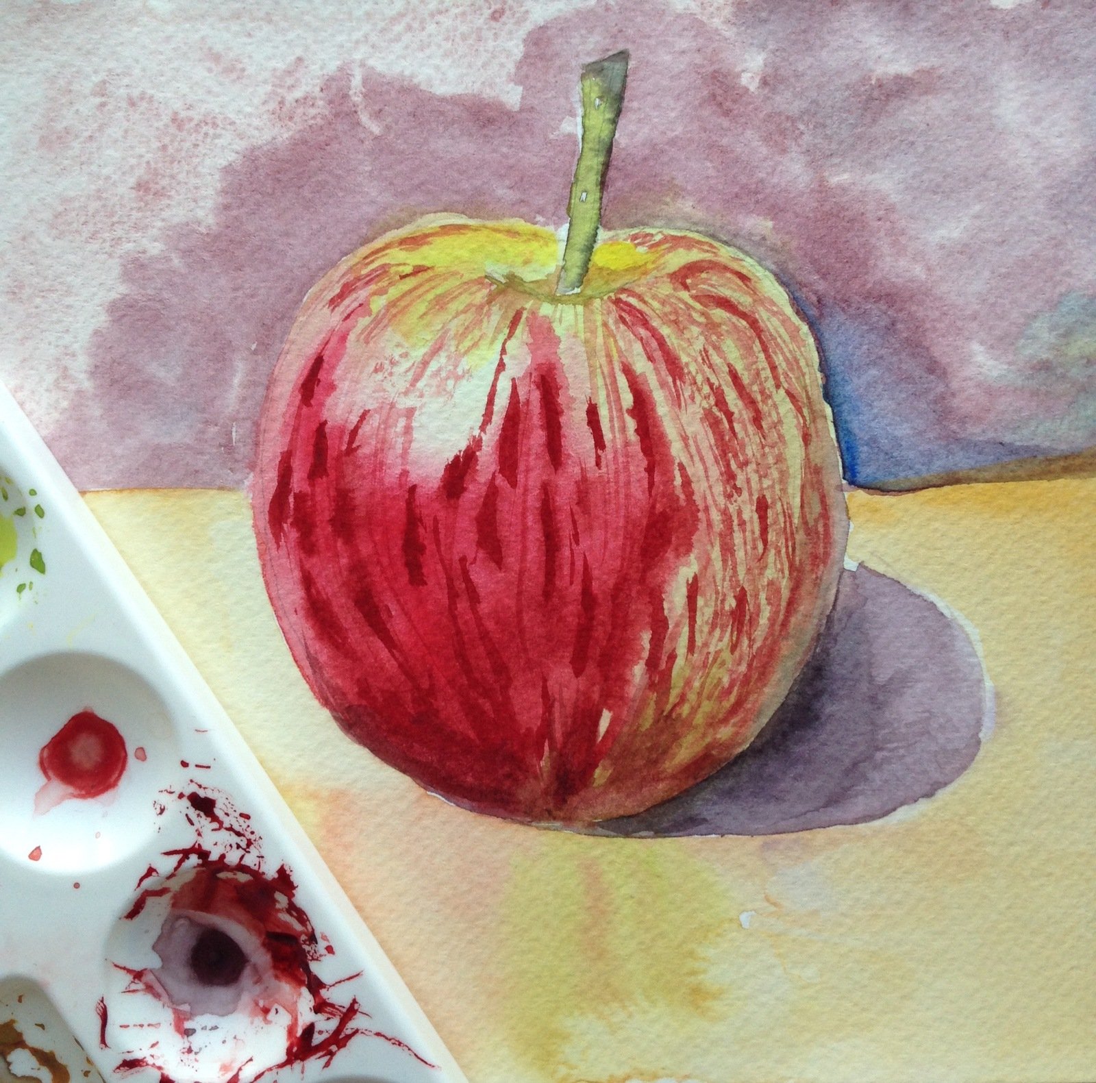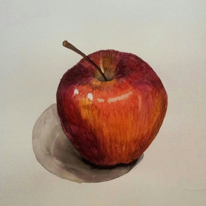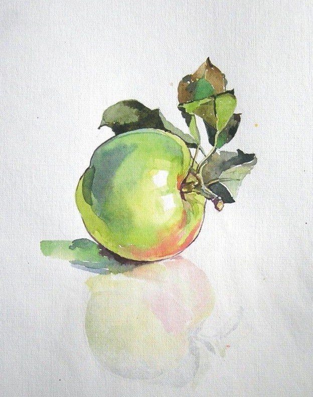 Акварель, потрясающий стиль, полон легкости и воздушности. Изображение яблока в данном стиле могут дополнять разводы от краски, либо разноцветные брызги.