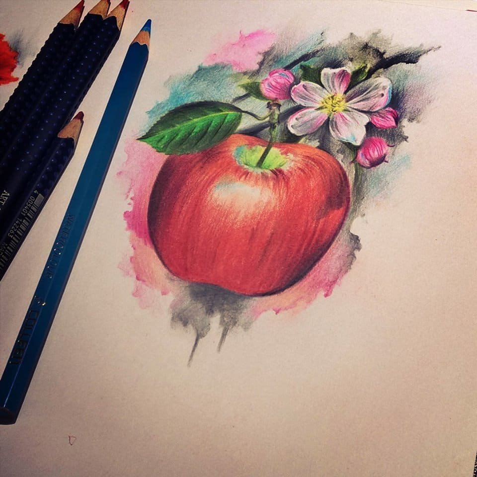Стиль для тату яблока может быть самым разным.