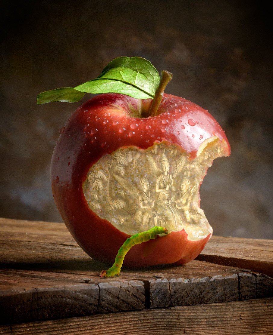 Яблоко является символом красоты, здоровья и молодости. Однако, часто мы слышим сравнение человека с червивым яблоком, в том случае, когда человек пытается показаться намного лучше, нежели он есть на самом деле.