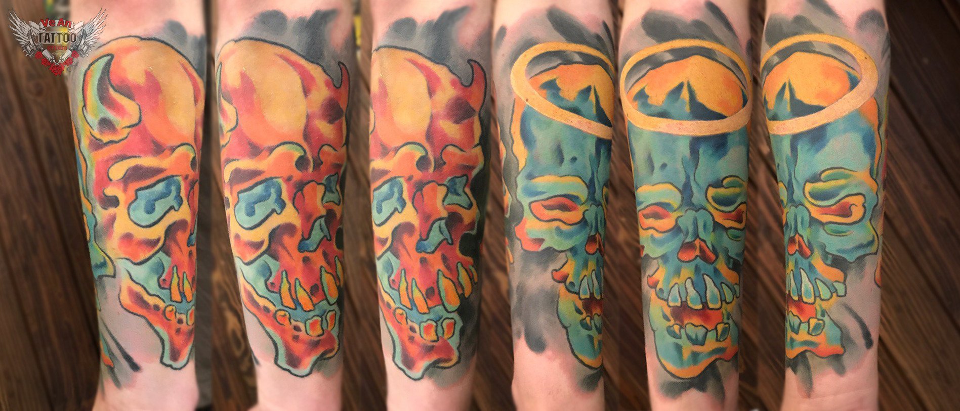 Ярик Флэйва. Родился 27 февраля в 1997 году. Проживаю в городе Черкассы. Татуировкой начал заниматься в августе 2015 года. Выполняю работы разной сложности. Чаще всего в двух основных стилях: Black&gray и New school. В работе отдаю предпочтение индивидуальным эскизам, которые рисую для каждого клиента. В свободное время занимаюсь саморазвитием и рисованием. То, что я стал татуировщиком - это логичное стечение обстоятельств. В школьные времена занимался живописью в художественной школе. В дальнейшем, отучился на дизайнера и решил попробовать себя в татуировке. С сетью студий "VeAn" мы познакомились летом в 2017. И уже в сентябре того же года ребята пригласили меня в свою команду. На данный момент татуирую в родном городе Черкассы. Я не делаю всё подряд. Клиенту стараюсь предложить лучшую альтернативу. Больше всего люблю крупные татуировки. Они эффектно выглядят, особенно с расстояния пары метров. Делаю цветные и черно-белые работы, иногда балуюсь мандалами и биомеханикой. На мне есть татуировки. Рукав, несколько татух на торсе и ногах. Регулярно забиваюсь сам. Сейчас я в поисках своего инструмента. Тату-прогресс не стоит на месте и каждый год появляются новые, крутые машинки и расходники. На данный момент использую одну машину - Cheyenne Spirit, которой мне, пока что, хватает. За то, кем я стал сейчас, очень благодарен родителям, что разглядели во мне творческий потенциал и направили его куда нужно. Благодарен своим учителям и преподавателям за то, чему научили меня. Благодарен клиентам, что выбирают меня и скажу спасибо себе, за упорство и целеустремленность. Коллегам желаю творческого и технического развития, ответственности и дружелюбности. Своим клиентам и будущим клиентам хочу пожелать самореализации, денег и оригинальных идей для ваших татух.