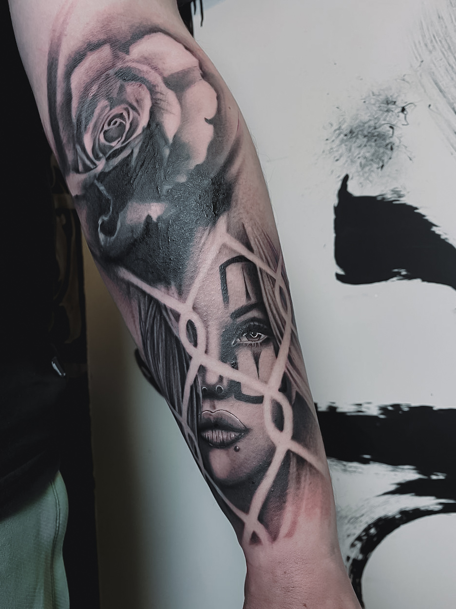 Меня зовут Александр, занимаюсь тату с 2020 года. Начал своё творчество с каллиграфии, выполнял росписи стен, вещей. Занимался этим порядком 3 лет, после чего решил попробовать себя в тату индустрии. Любимый стиль леттеринг, графика, орнаментал. Сейчас работаю в тату студии в Черновцах.
