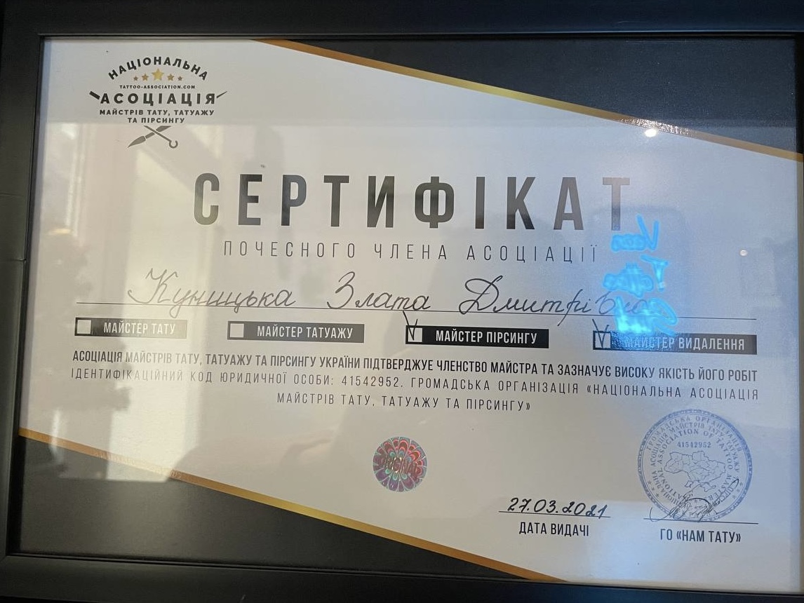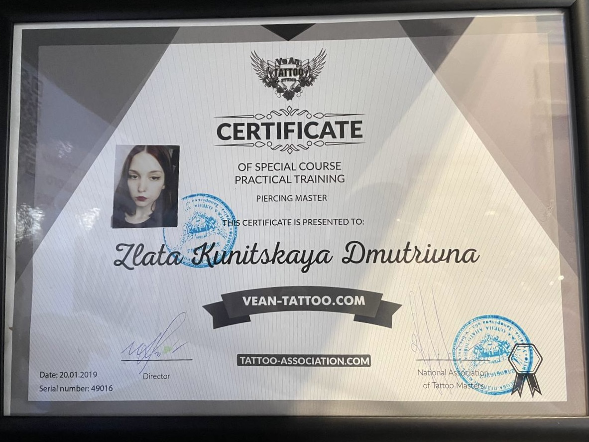 Меня зовут Злата. В 2017 я открыла для себя пирсинг. Начинала с проколов ушей (мочки, разные виды хрящей), потом добавила уже и остальные проколы на теле. На данный момент работаю в студии Днепра White VEAN TATTOO. Сфера очень интересная, так как даёт постоянное развитие. Работаю только с титановыми украшениям.