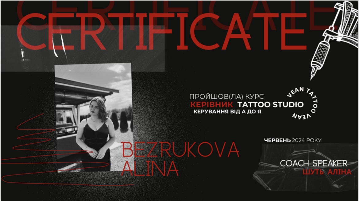 Привет, меня зовут Алина и я администратор лучшей студии тату и пирсинга в Коломые VEAN TATTOO. Поднимаю настроение как коллективу, так и клиентам.Обожаю делать прекрасные фото и вести красиво соцсети. Поэтому жду вас в нашей студии.