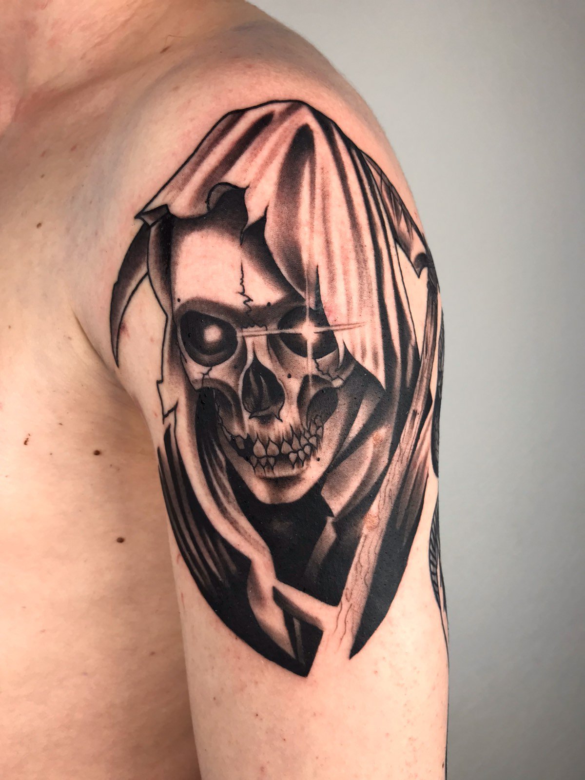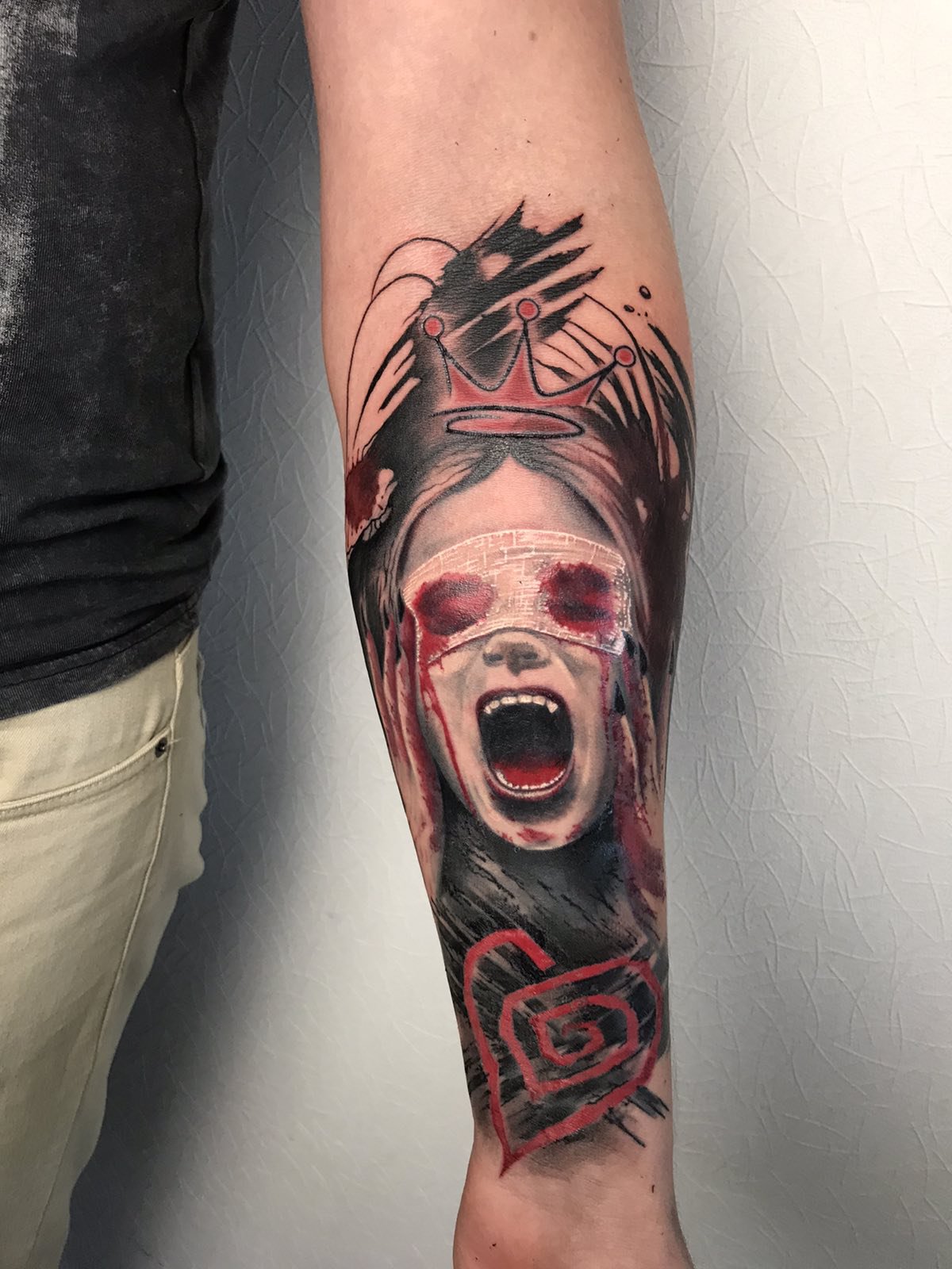 Демид топ-мастер студии VeAn Краматорск. Любимые стили реализм, япония, акварель, треш-полька.