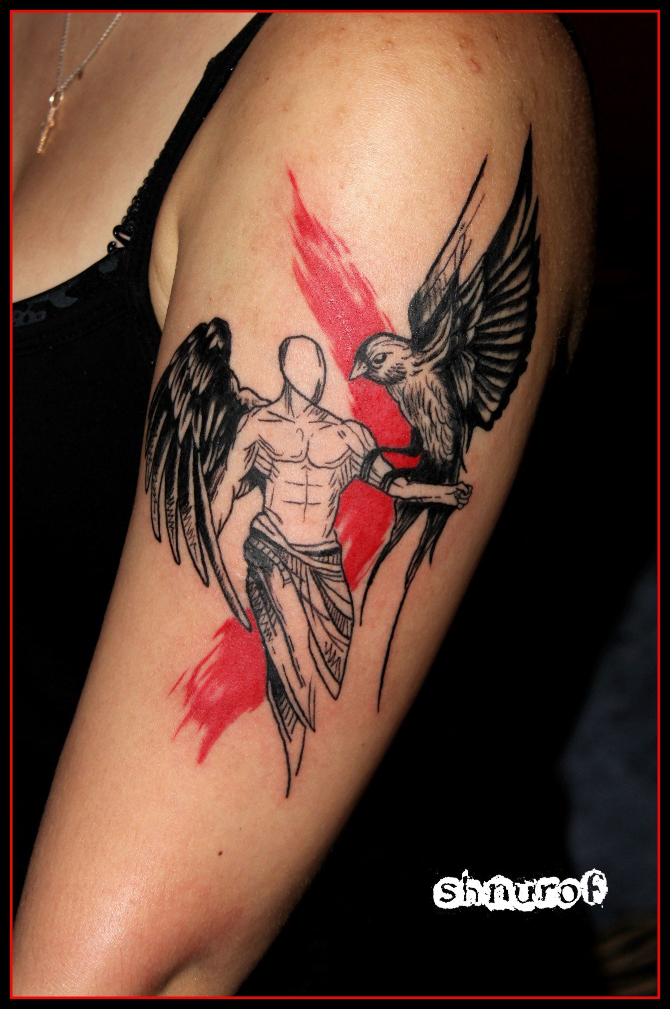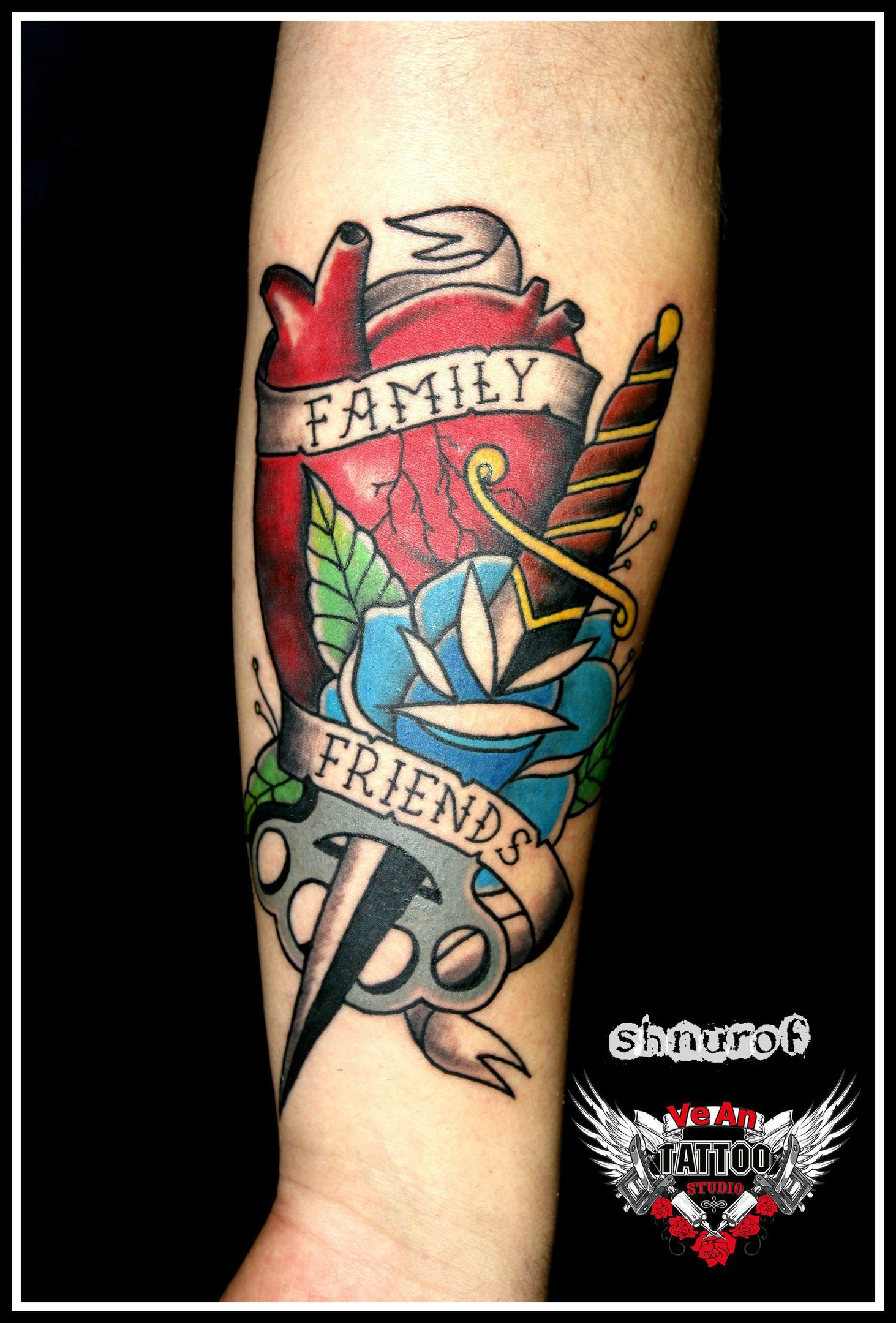 Скляренко Олег Владимирович (Шнуроф) 09.01.1986г. родился в г. Кривой Рог. Мастер художественной татуировки в любых стилях. Делаю людям больно с 2016г. Закончил школу искусств и ДГТУ. Свободное время провожу с друзьями. Умение рисовать и тяжелая музыка вдохновили меня попробовать делать татуировки. Работаю в студии VeAn с сентября 2017г. в г. Кривой Рог. Больше предпочитаю работать с цветными тату. У меня пока 1 тату, так как не могу подобрать себе эскизы. Желаю коллегам вдохновения и по больше клиентов с интересными идеями.