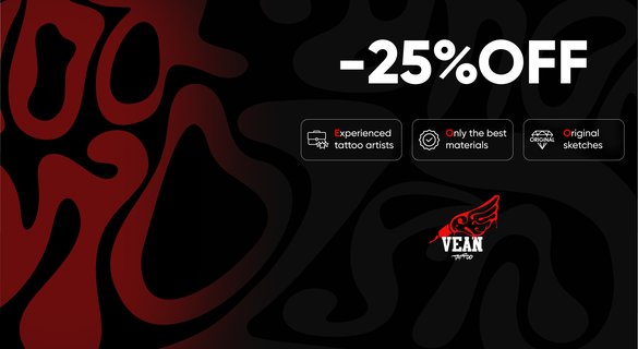 - Получи бесплатную татуировку до 7 см по уникальному эскизу в одной из студий VEAN.