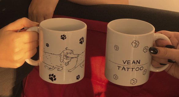 Кроме этого каждый из вас может внести свой вклад сделав тату с изображением животного, ведь с них до -15% будет направлено на помощь усатикам. Так же вы можете приобрести лимитированную кружку VEAN с дизайном котика или собачки и получить магнитик.