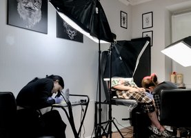 4. Печать сети тату-салонов, проводящей курсы и фотография ученика