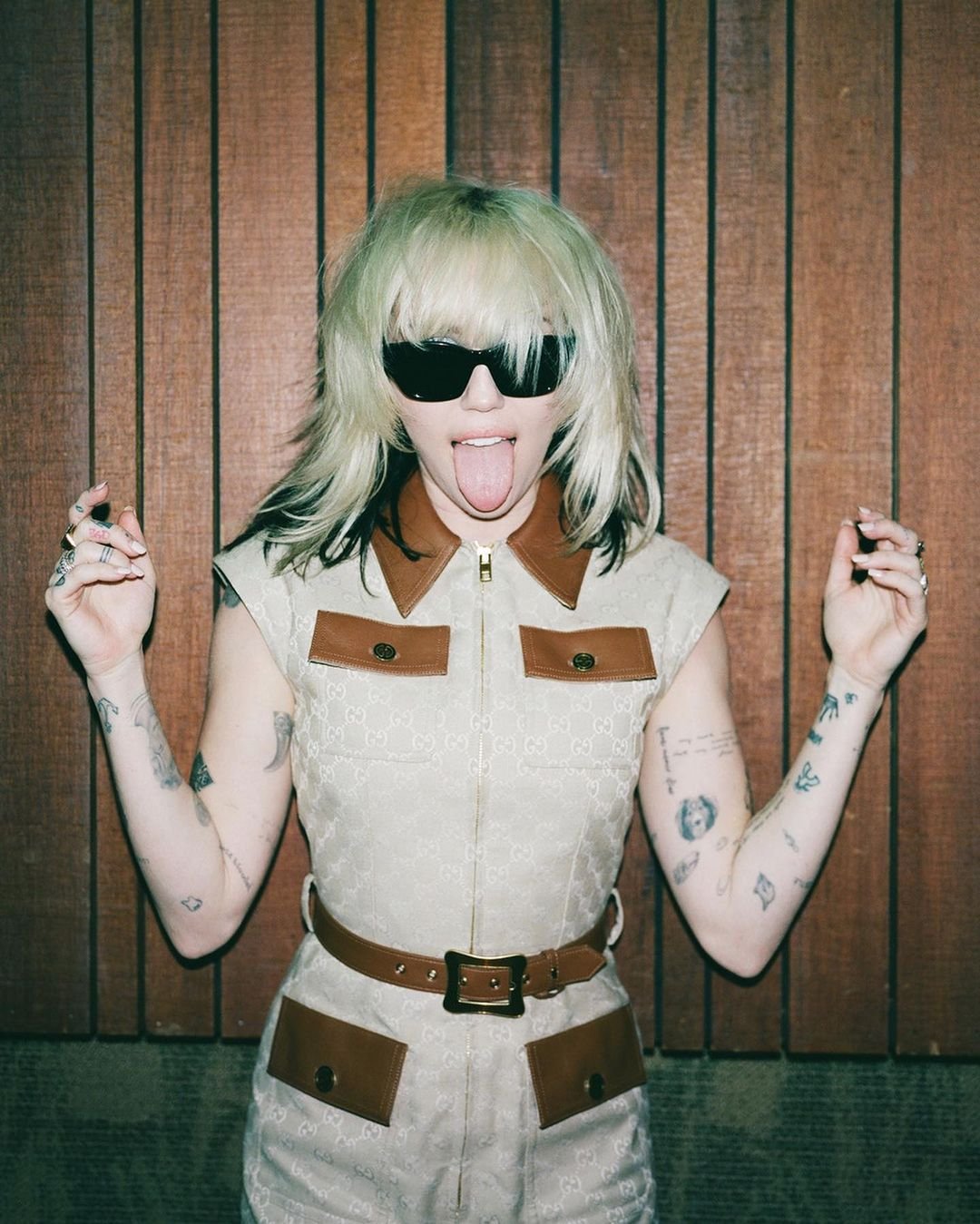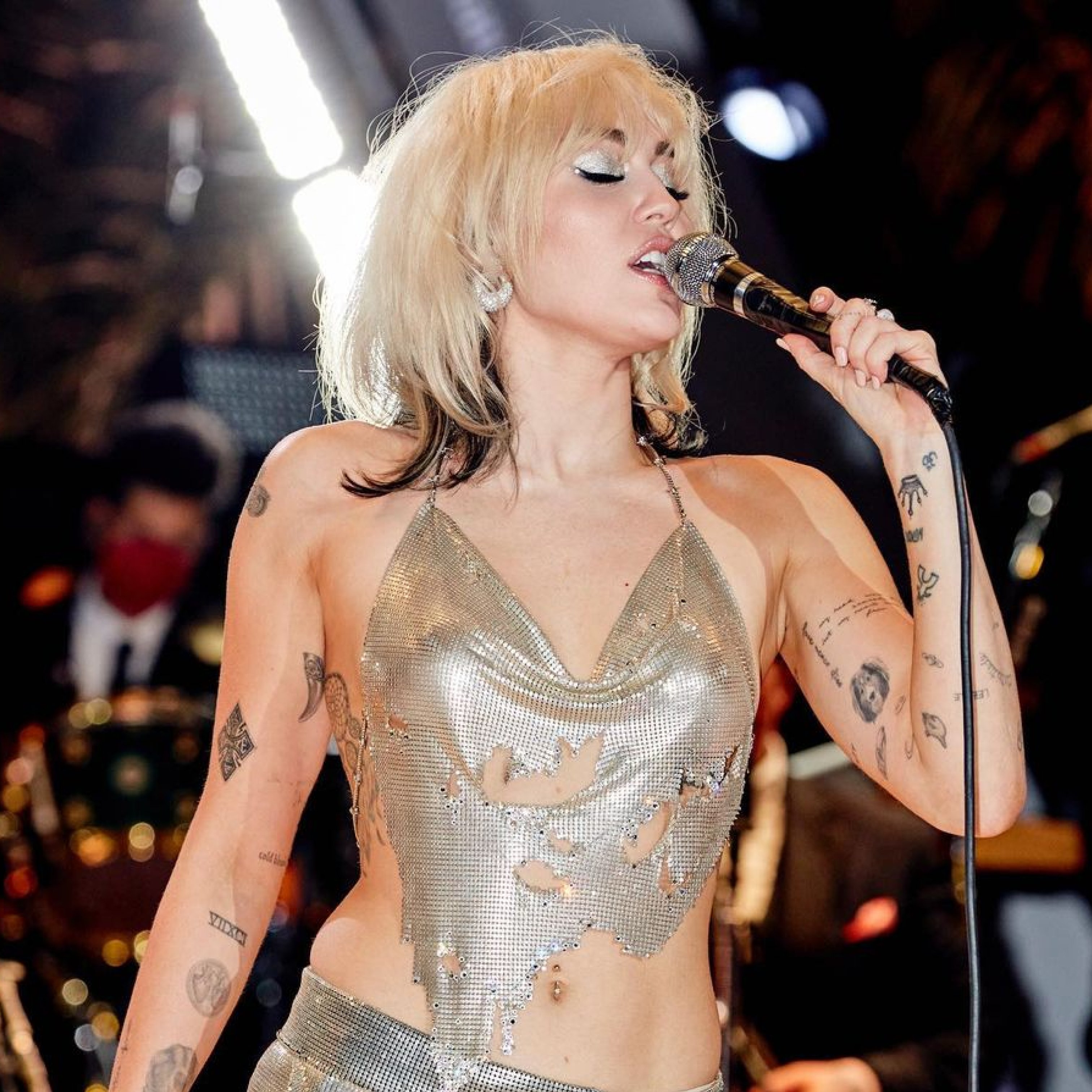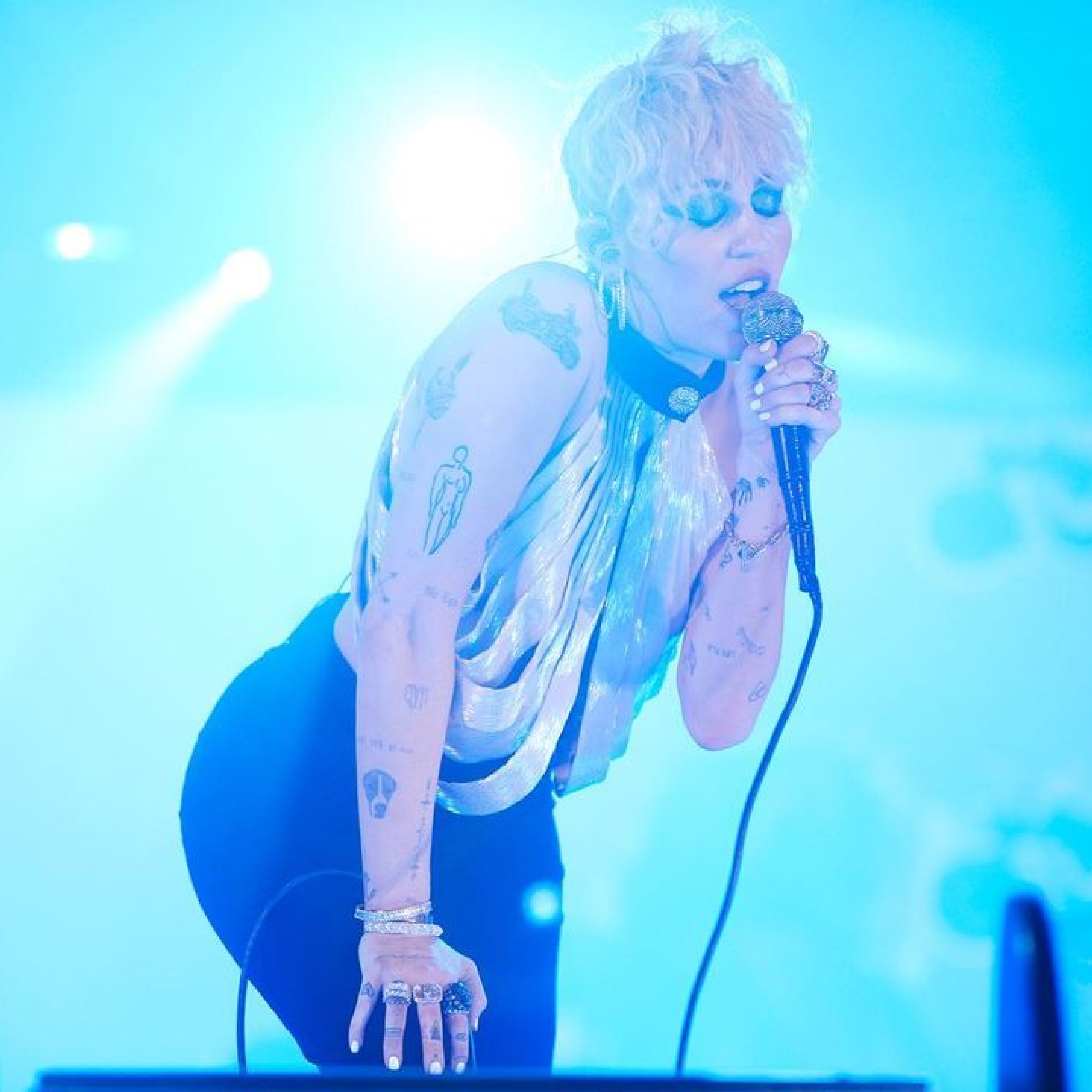 На руці співачки реалістичний портрет бабусі Майлі в чорно-сірому кольорі. Під фотографією тату на сторінці у Twitter співачка написала: "Тому що я її улюблениця, а вона - моя". На руці витатуйовано слово "Wükong". Це прізвисько її молодшого брата Брейсона. На правій стопі збоку вибито слово "тато", на лівій стопі симетрично розташувався напис "мама". На тильній стороні долоні вибито рік народження батька Майлі - 1961. Батькові присвячене ще одне татуювання - зображення мотоцикла на плечі.