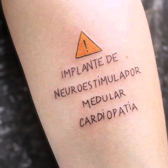 • Медичні пристрої. Якщо людина використовує кардіостимулятор або імплантовані пристрої, це можна позначити за допомогою тату. Така інформація допоможе уникнути непотрібних втручань, які можуть нашкодити.
