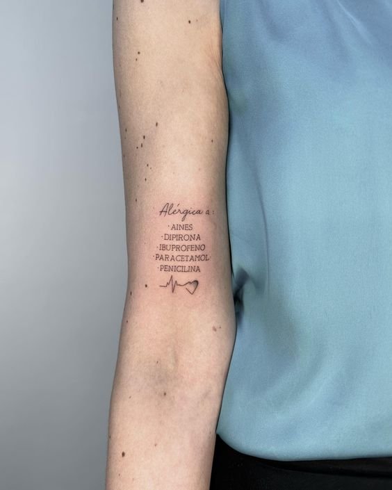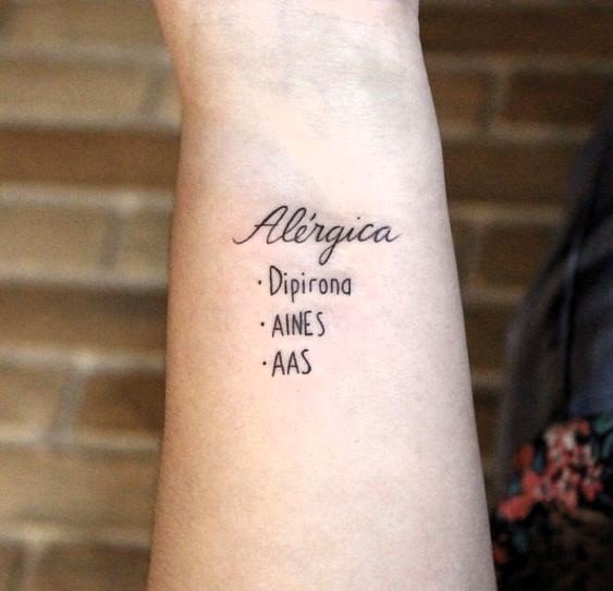 • Попередження про алергії. Люди з важкими алергіями, наприклад на пеніцилін, часто роблять тату з вказівкою небезпечних для них речовин. Це допомагає медикам швидко ухвалити правильне рішення.