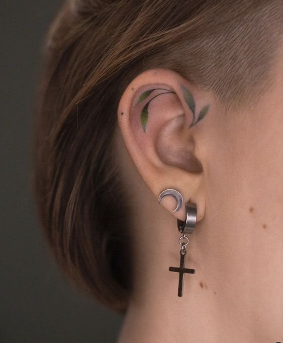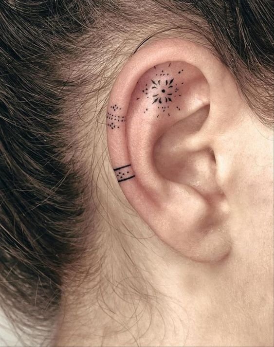 Це варіант для тих, хто мріє про тату, але не хоче надто її виставляти напоказ. А татуювання на вусі можна легко прикрити волоссям.