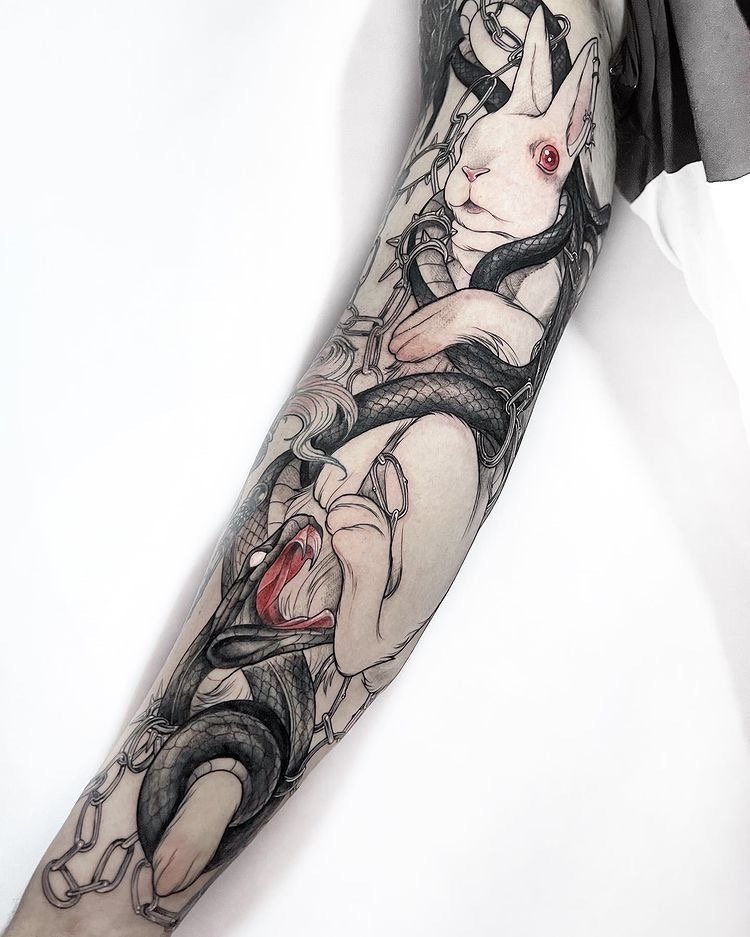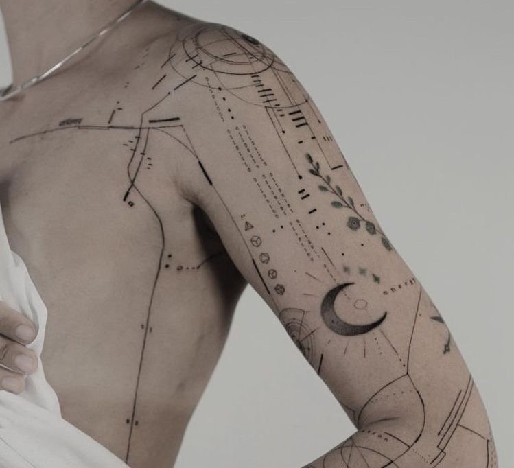 Існує два способи зробити тату рукав: створити повний ескіз відразу і нанести все зображення або поступово об'єднати кілька малюнків в один, додавши загальну сюжетну лінію.