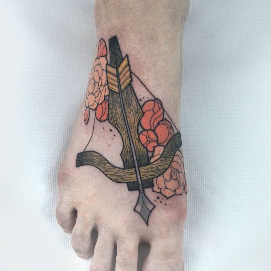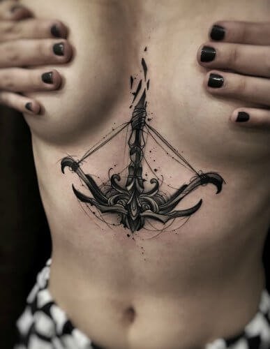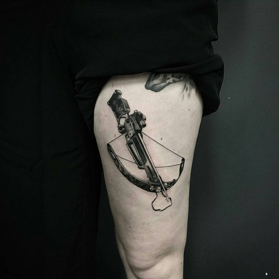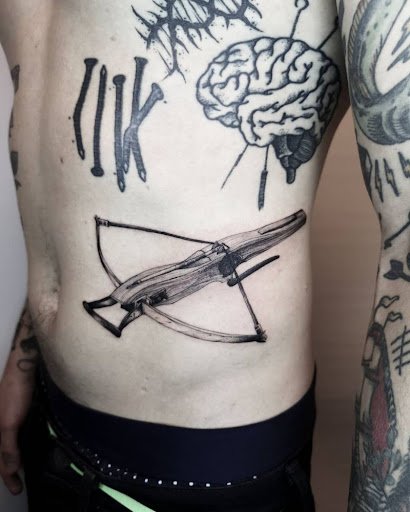 Зупиняючи ж вибір на татуюваннях які не дуже популярні, ми можемо зіткнутися й з нестандартними значеннями картинок. Татуювання у вигляді арбалета також несе в собі прихований сенс.