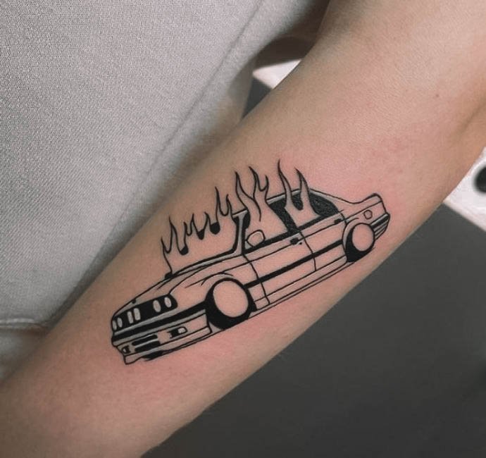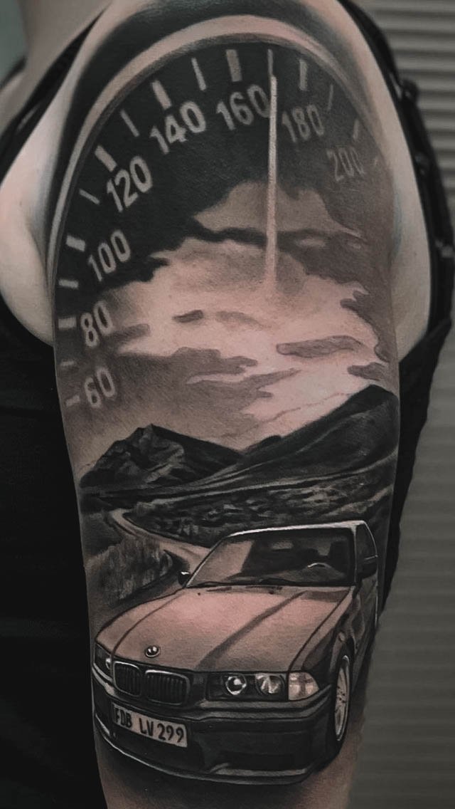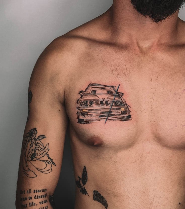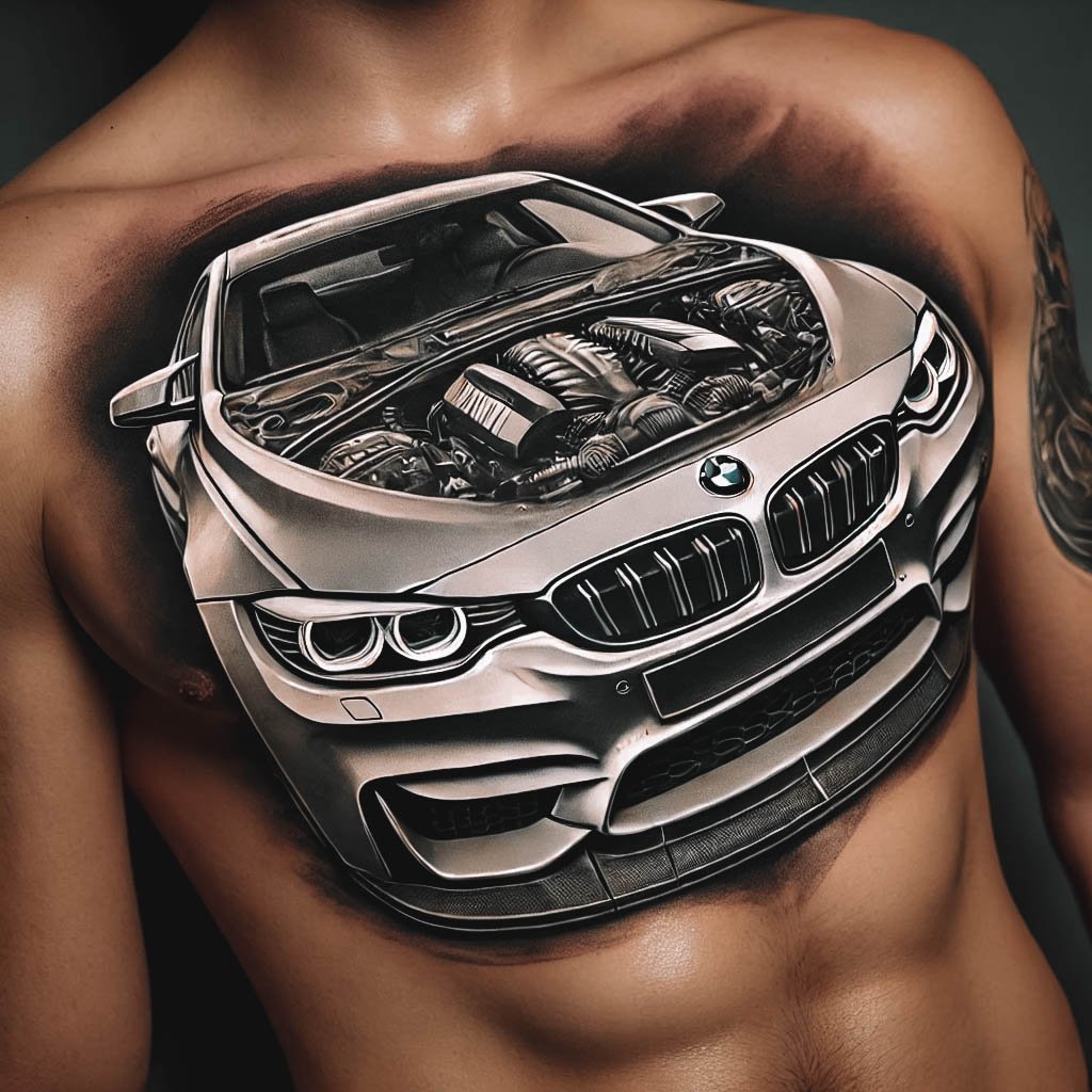 Автомобільна тематика в татуюваннях давно стала популярною серед автолюбителів, символізуючи відданість бренду і пристрасть до швидкості.