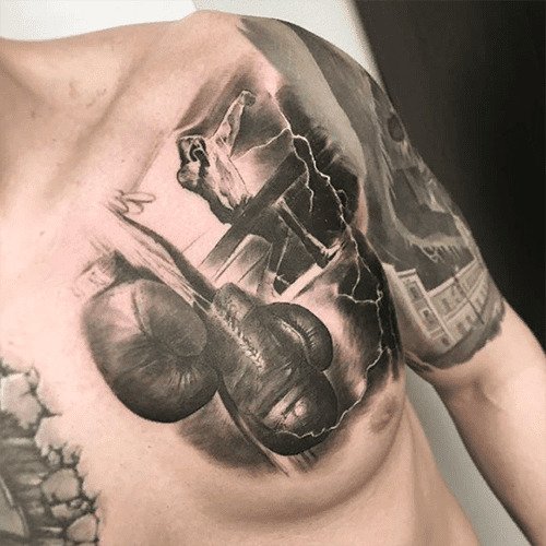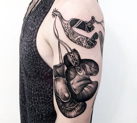 Татуювання рукавичок - це часто вибір людей пов'язаних з боротьбою або боксом.