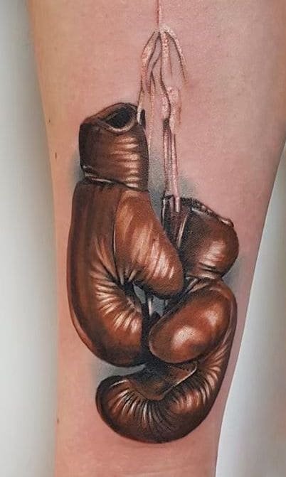 Тату боксерських рукавичок одне з небагатьох, яке підкорює рейтинг спортивних тату. Самі рукавички можуть бути виконані як в чорно-білих тонах, так і в кольоровому варіанті. Вибір цього малюнка дуже важливий - адже він говорить про внутрішній світ та стиль життя, а також підкреслює захоплення спортом. Зупинившись саме на цьому тату - це в першу чергу говорить про те, що чоловік хоче показати свої сильні якості, та продемонструвати всім свій вольовий та войовничий характер.