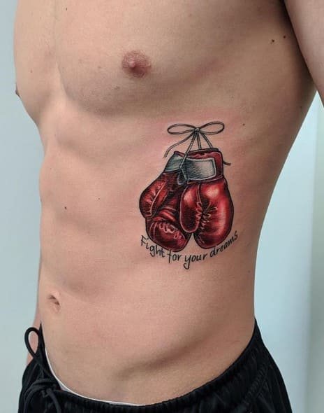 Сильна стать не уявляє своє життя без протистояння, боротьби, саме тому татуювання зустрічається найчастіше на чоловічому тілі. Боксерські рукавички - символ перемоги над суперником. Такі малюнки роблять колишні боксери або просто любителі цього виду спорту. Тату боксерських рукавичок може бути пов'язане з якимось важливим боєм, або як пам'ять про роки присвячені цьому виду спорту. Цей ескіз для кожного матиме своє особливе значення. Але все ж символіка боксерських рукавичок пов'язана безпосередньо зі світом спорту, і це одне із самих основних тлумачень даного тату.