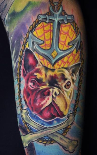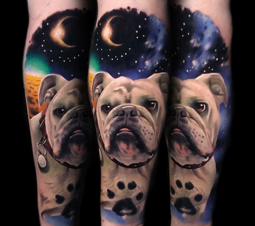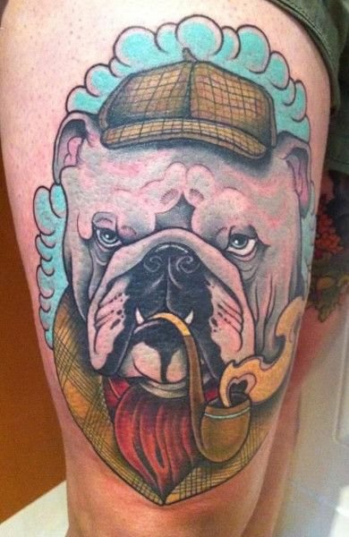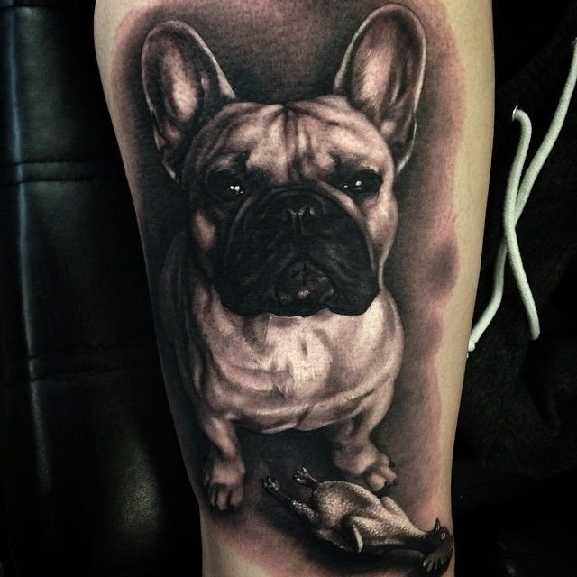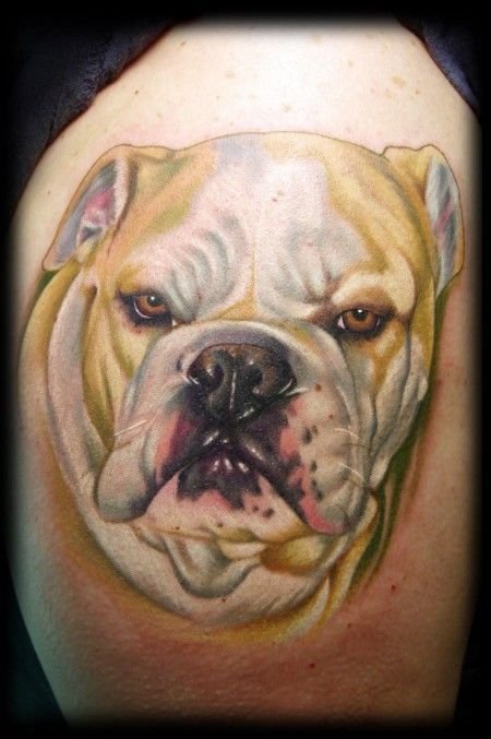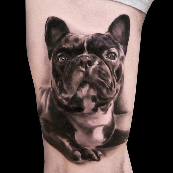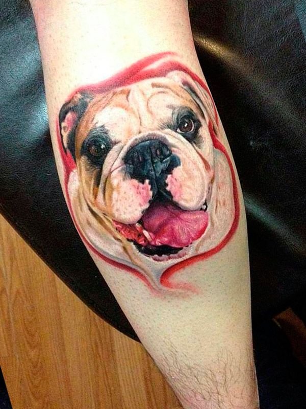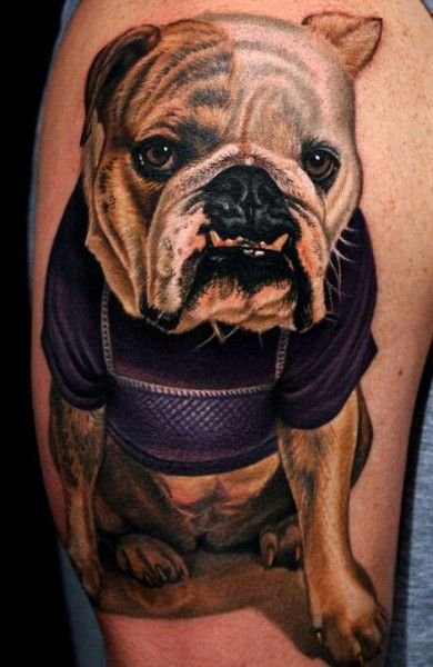 - Татуювання з реалістичним зображенням бульдога найчастіше віддають перевагу люди, у яких є такий вихованець. Таким чином вони демонструють любов до свого чотириногого друга. Або ж дане зображення говорить про те, що людині просто подобається така порода собак.
