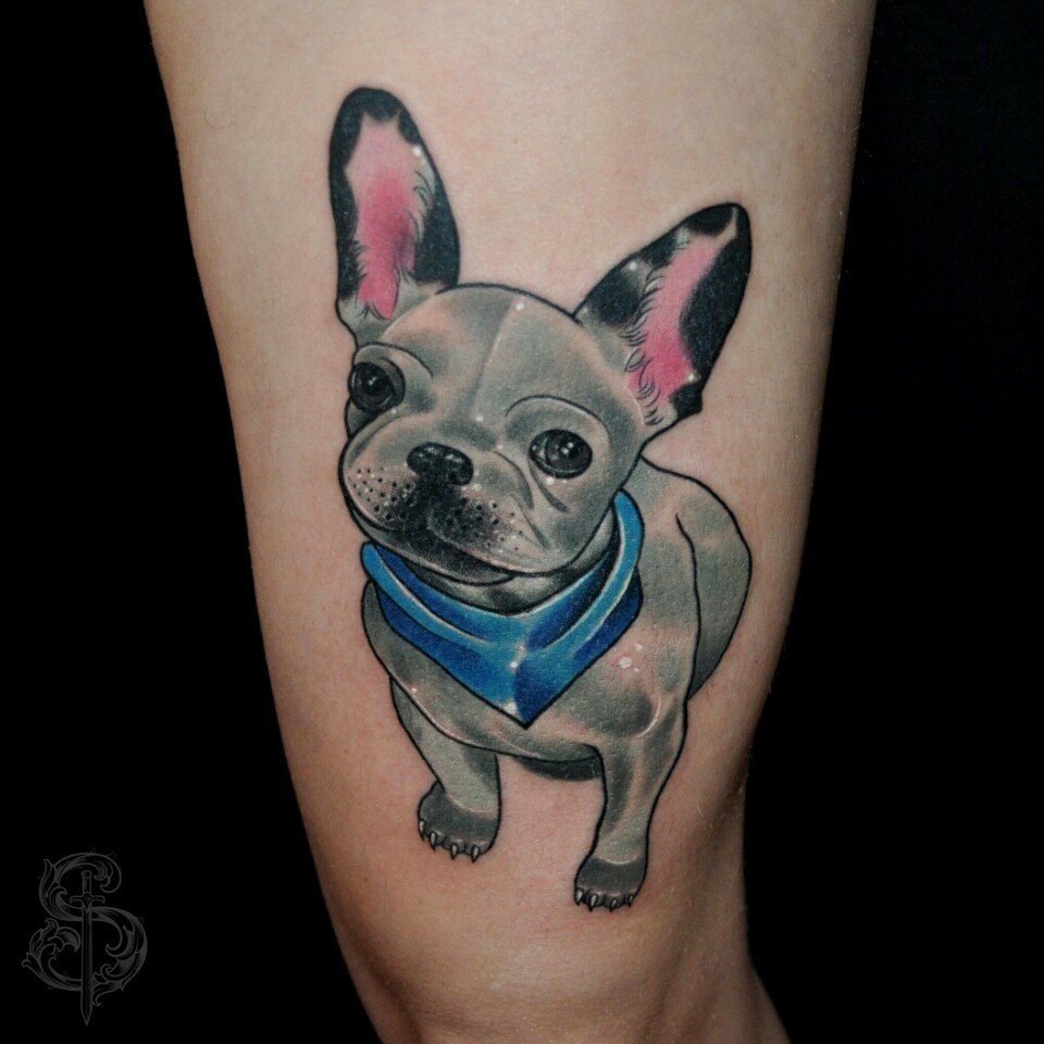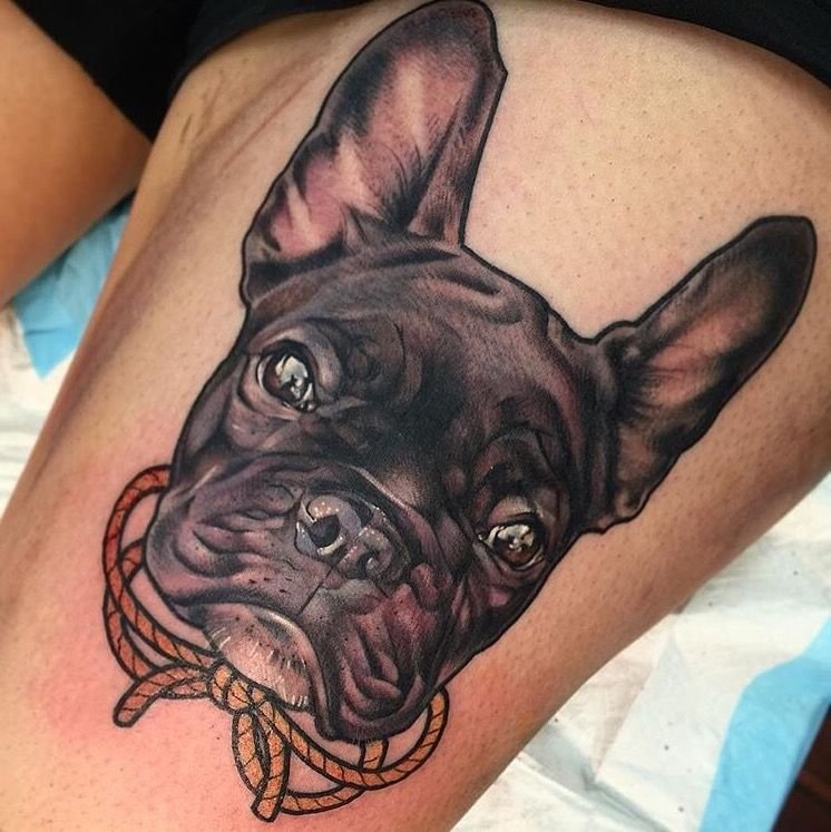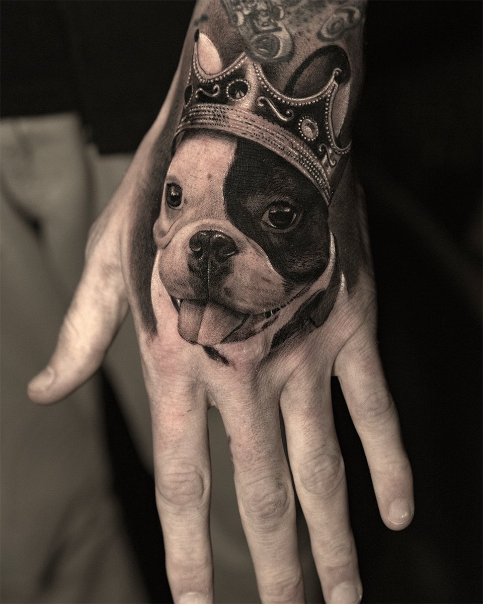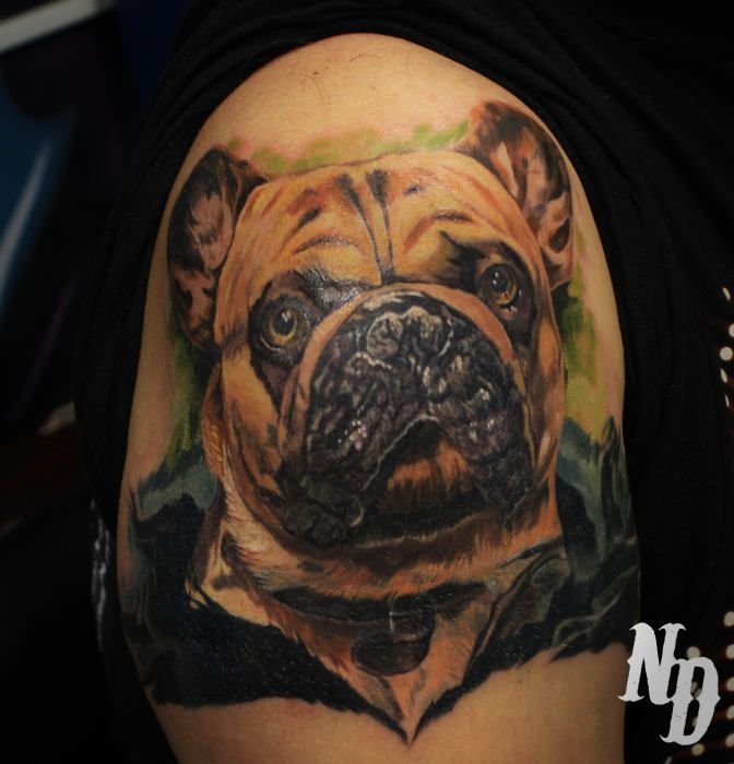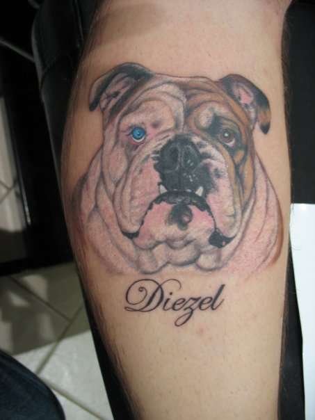 - Татуювання з реалістичним зображенням бульдога найчастіше віддають перевагу люди, у яких є такий вихованець. Таким чином вони демонструють любов до свого чотириногого друга. Або ж дане зображення говорить про те, що людині просто подобається така порода собак.
