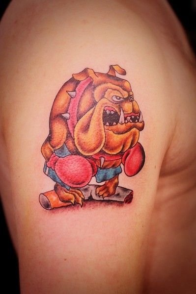 - Особливого значення в татуюваннях такого типу немає, найчастіше такі татуювання говорять про те, що їх володар життєрадісний, веселий, невимушений чоловік. Такі зображення на тілі безумовно будуть притягувати погляди перехожих та навколишніх людей. Так само зображення з мультиплікаційним бульдогом каже, що в душі володаря все ще є дитина.
