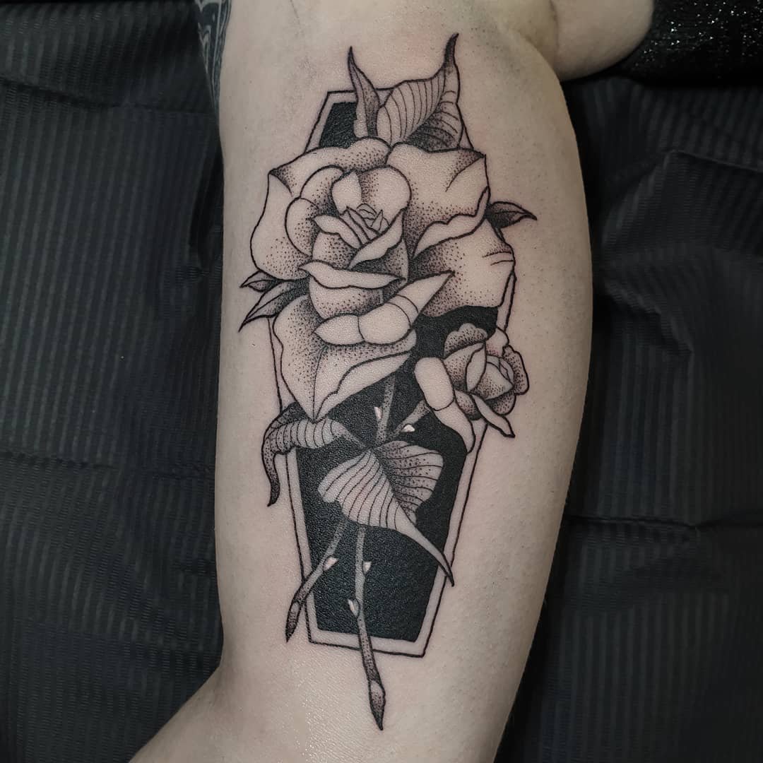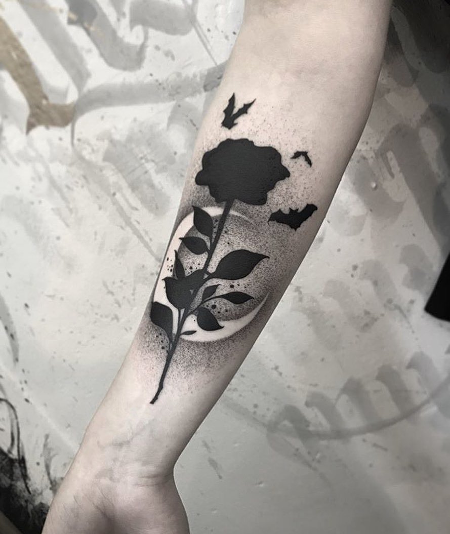 Це одне з найбільш готичних татуювань, просочене духом повстання та панку. Образ доволі складний та специфічний. Перед вибором ескізу готичної чорної троянди, ретельно зважте усі за та проти.