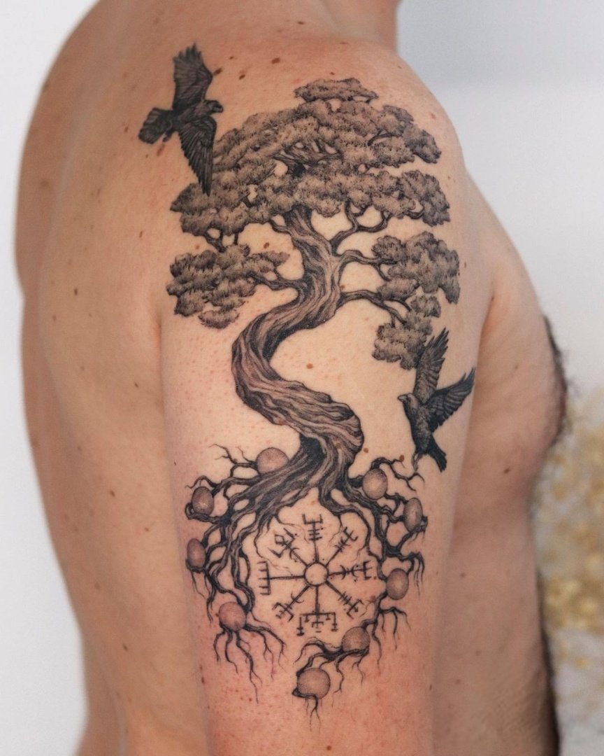 Згідно з легендами, його коріння знаходяться у дев’ятьох світах, а сама рослина є об’єднанням всього у Всесвіті. Іггдрасіль символізує взаємозв’язки, мудрість та силу.