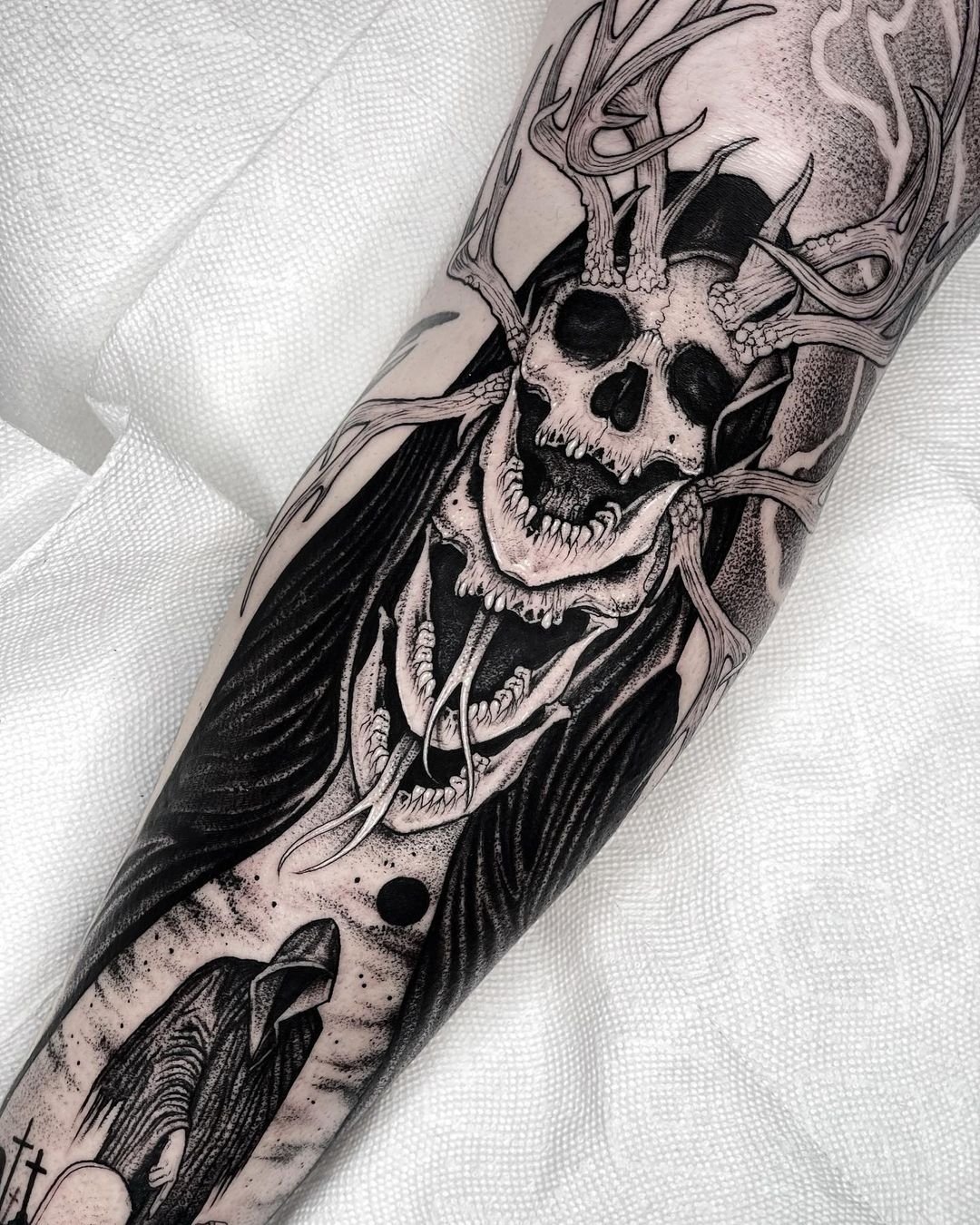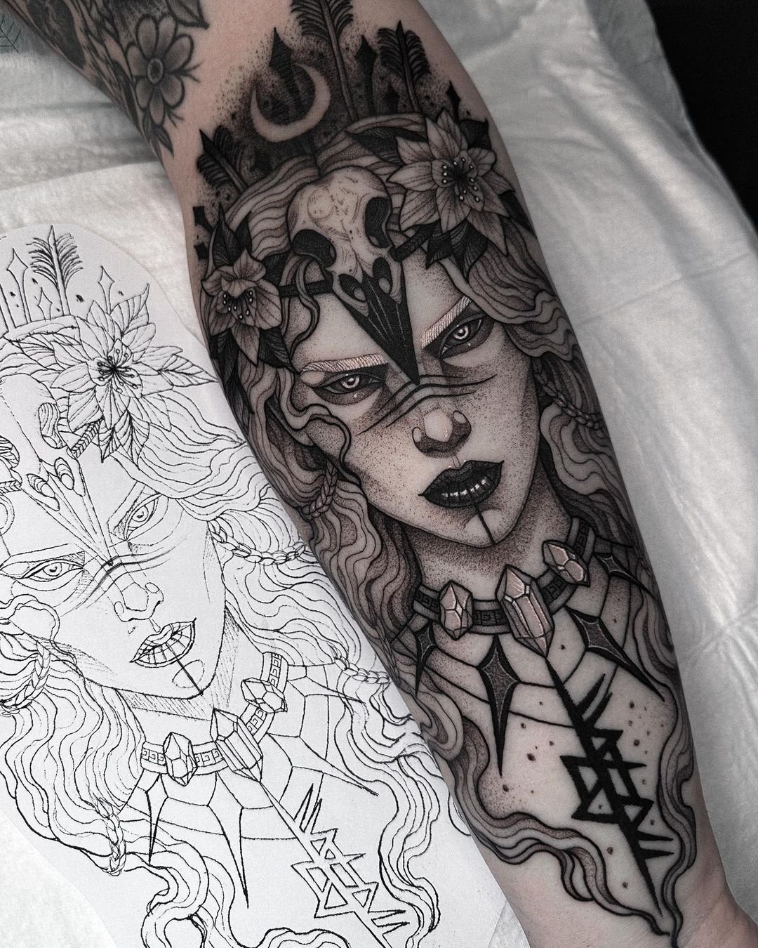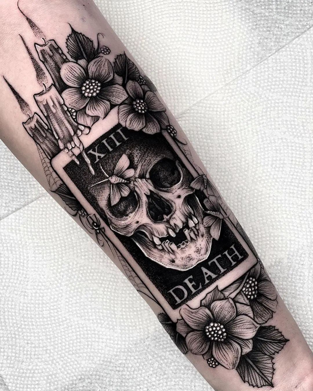 Татуювання може бути темним та гротескним, або ж навпаки прикрашеним насиченими кольорами. Стиль виконання висвітлює різні аспекти та елементи потойбічного життя. Череп може символізувати вдячність мертвим, тріумф життя, безсмертя душі, тощо. Тоді як зображення скелета жінки означає невідворотність смерті у кожному вигині.