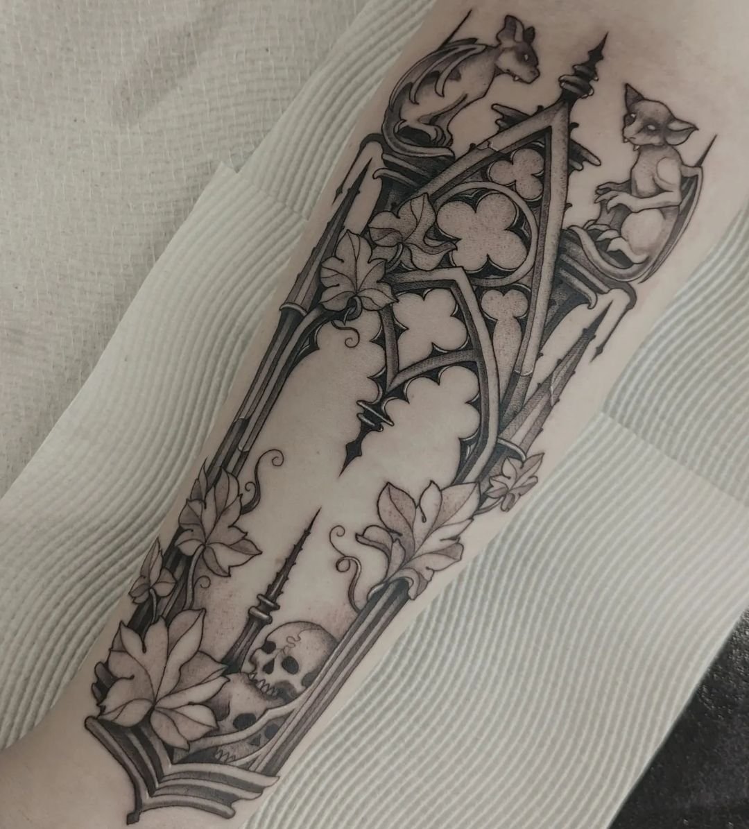 В цей же час з’являються перші готичні татуювання. Зазвичай вони використовувались для зображення похмурих, езотеричних, містичних, екзистенційних та інших темних мотивів. Таких як скелети, смерть, темні сцени та готична архітектура, фантастичні звірі, різноманітні демони, черепа, тощо.