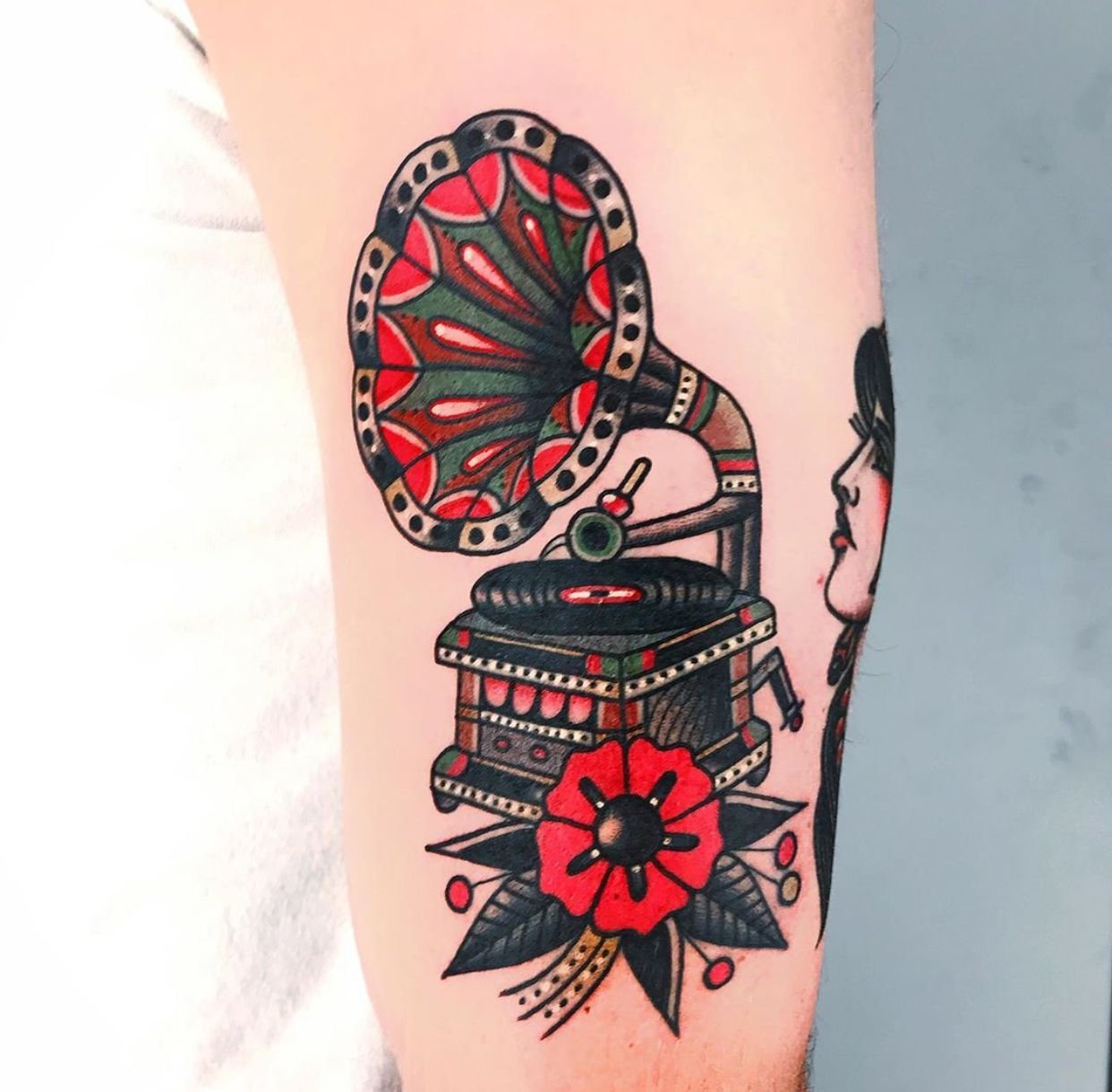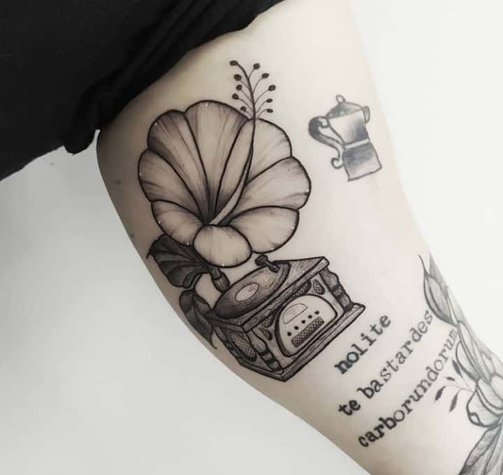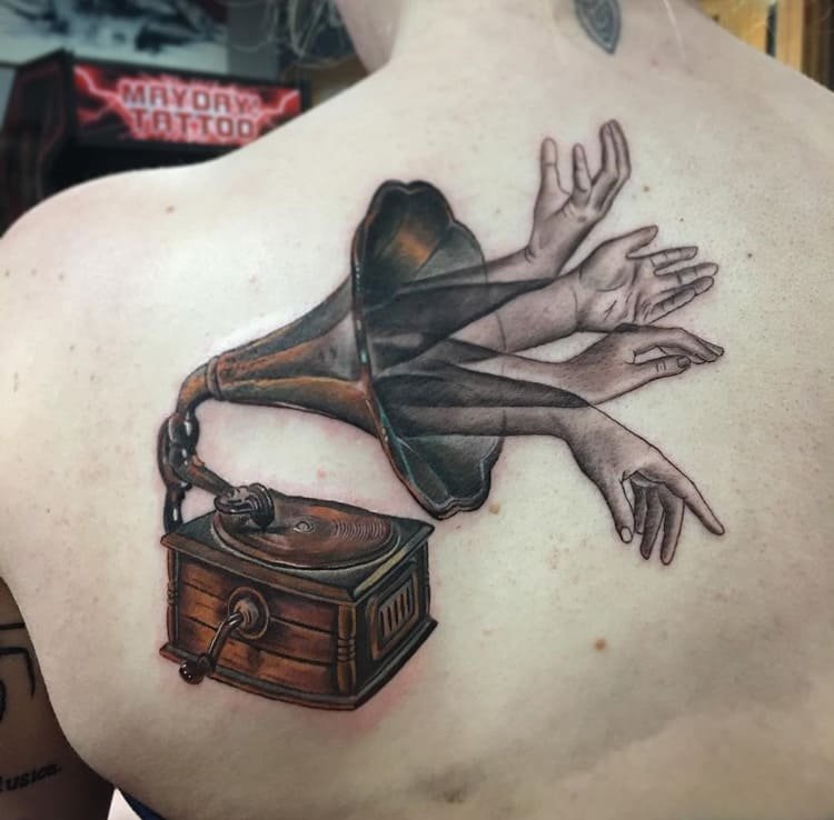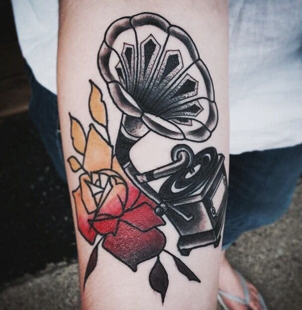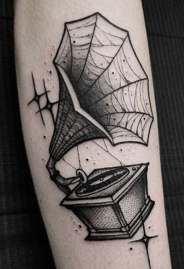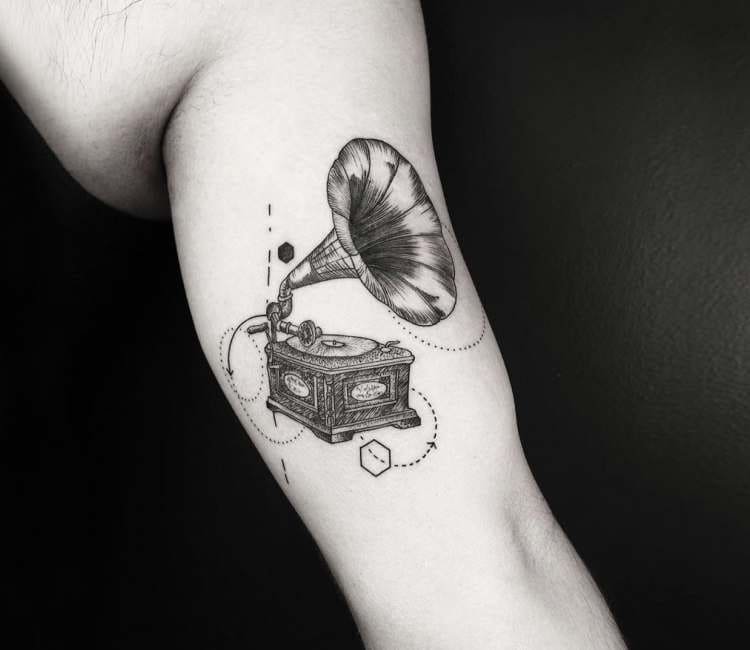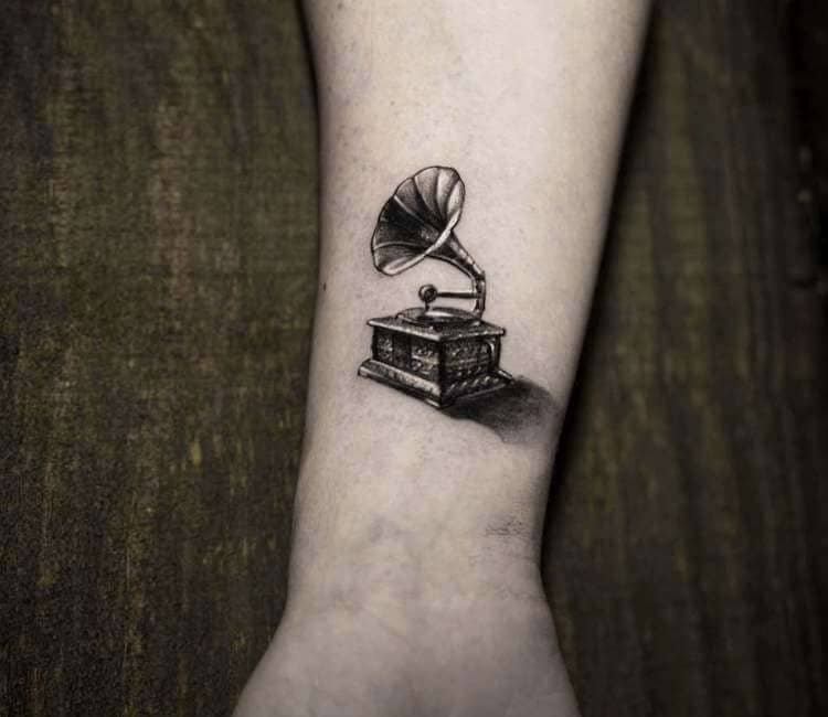 В даному випадку, тату грамофон буде демонструвати внутрішній світ людини, яка нанесла його собі на тіло. Він має всі риси старовинного класичного пристрою, що зараз модно та актуально.