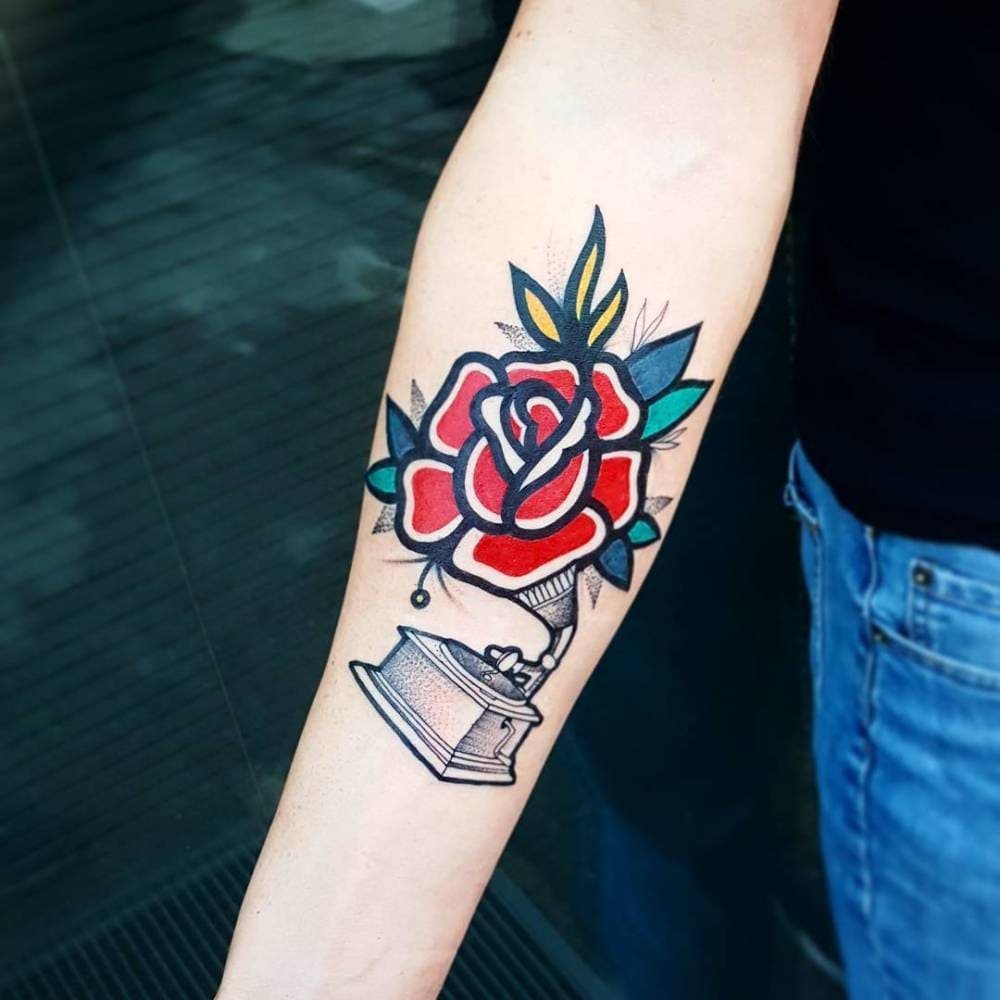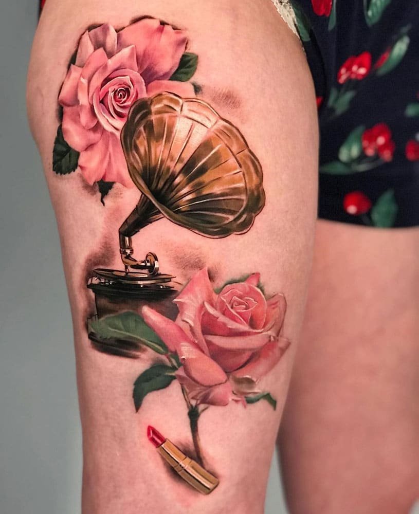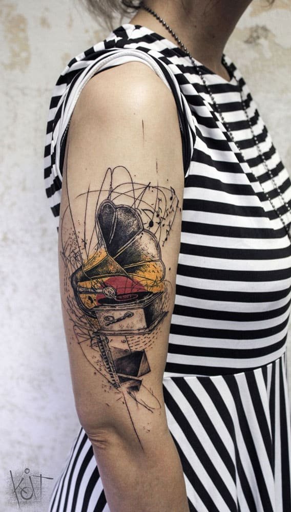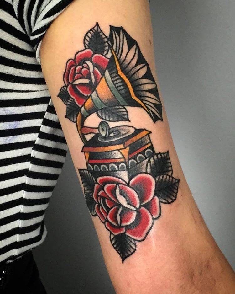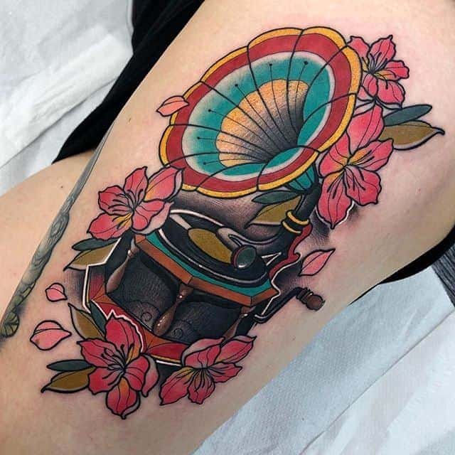 В даному випадку, тату грамофон буде демонструвати внутрішній світ людини, яка нанесла його собі на тіло. Він має всі риси старовинного класичного пристрою, що зараз модно та актуально.