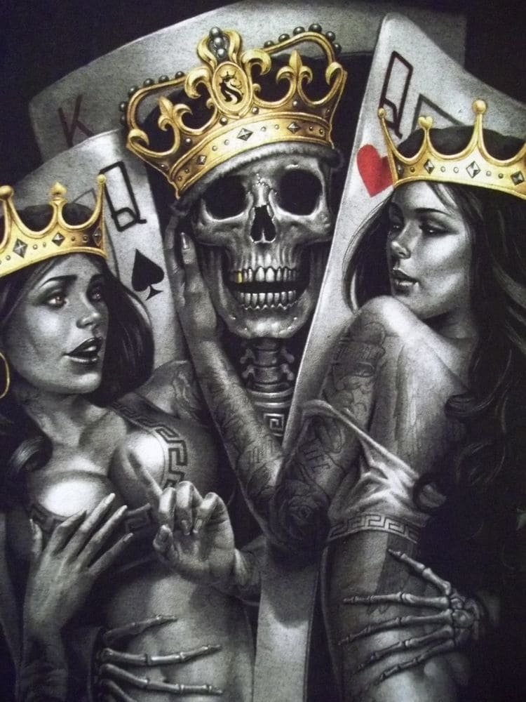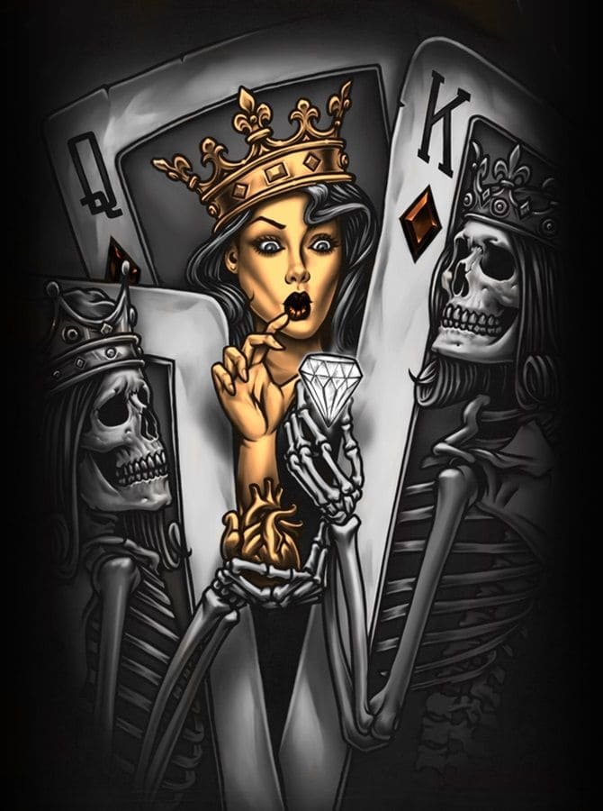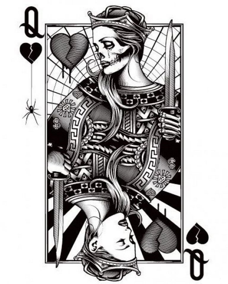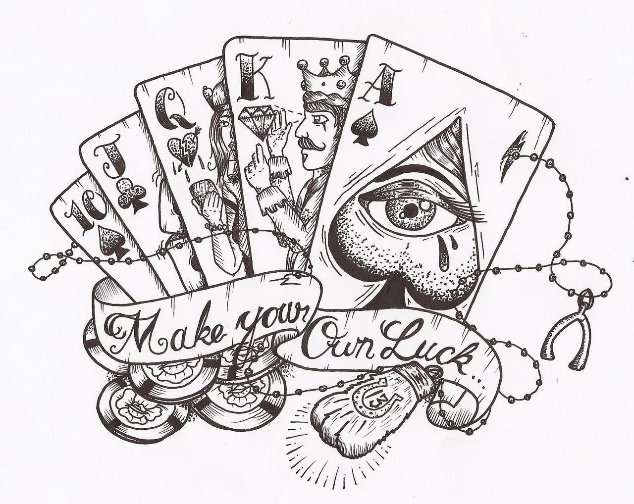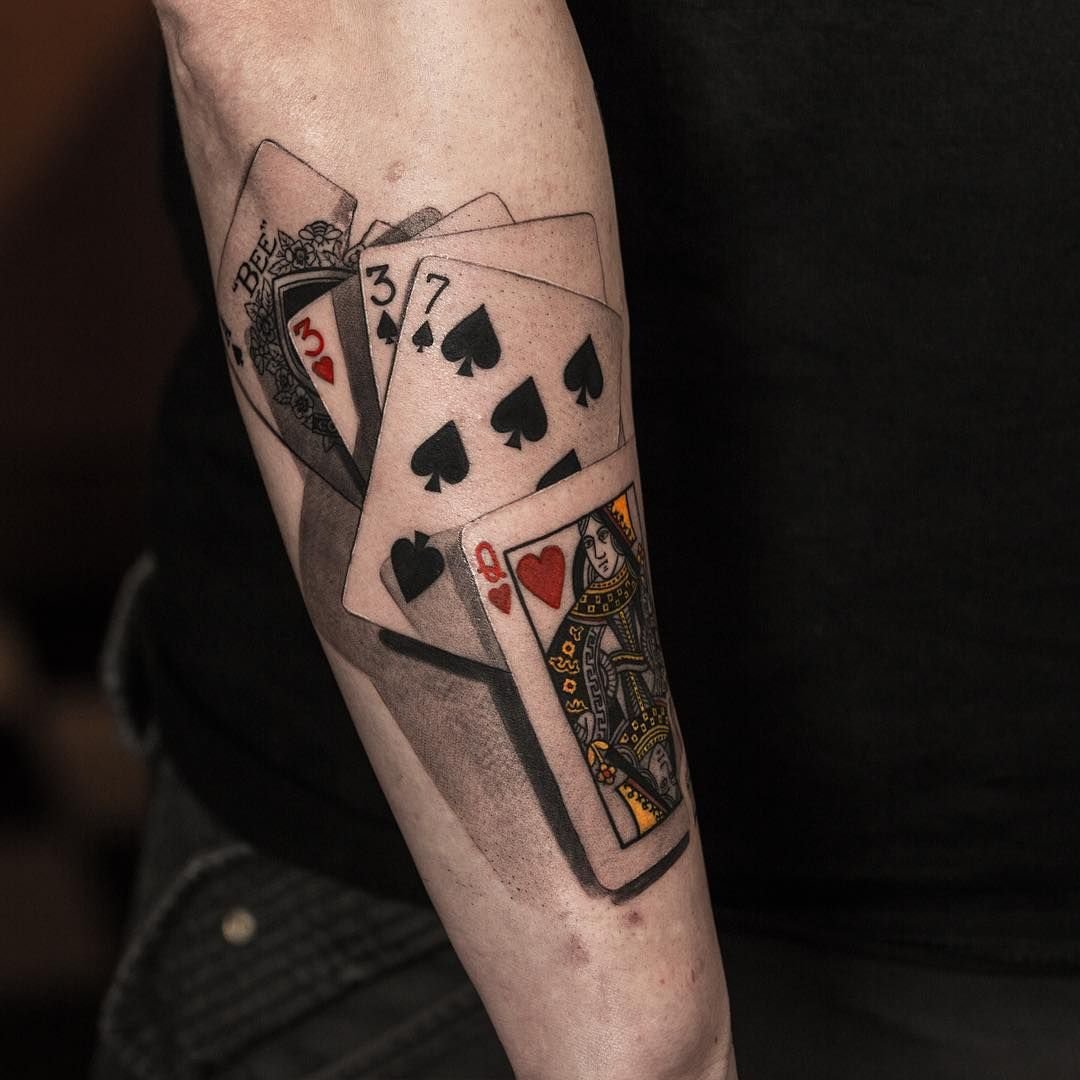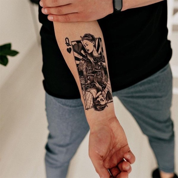 Досить часто ескіз з гральними картами обирають азартні люди, вважається, що зображення карт на тілі приносить своєму власникові везіння. Це стосується не тільки людей, які грають в карти, але й бізнесменів, любителів фортуни.