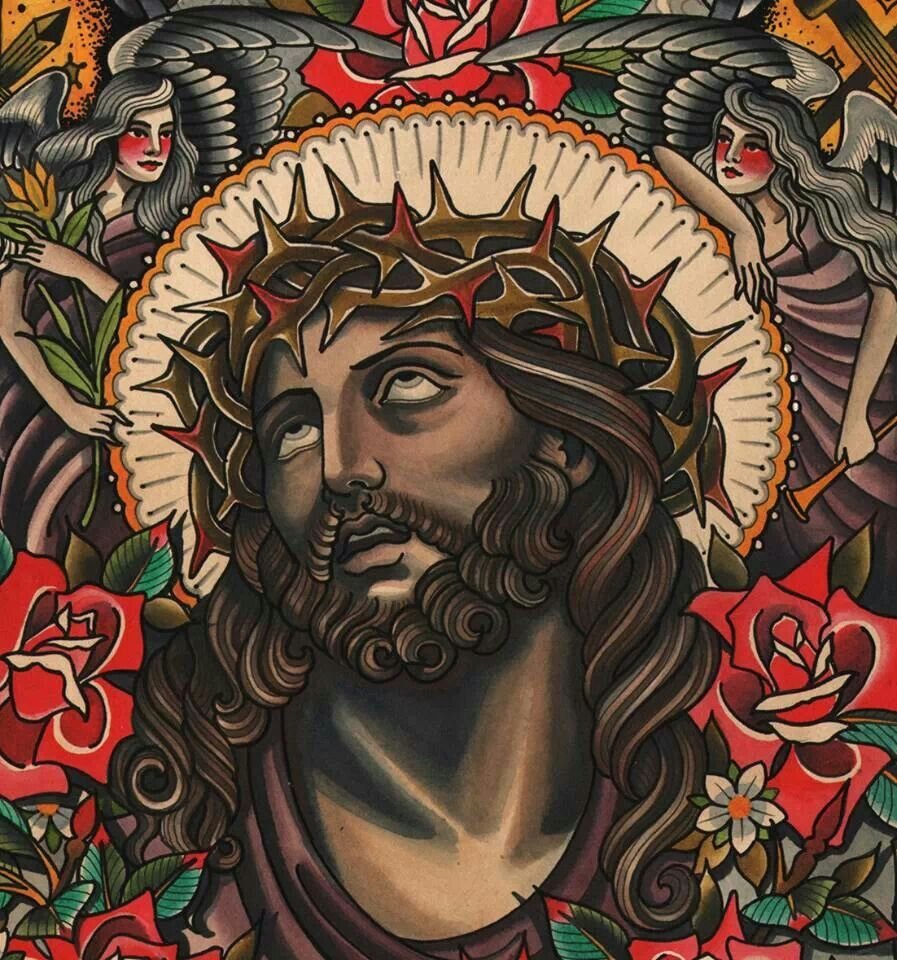 Безліч століть Християнство виступає в ролі однієї з головних релігій світу, велика кількість людей вірять в оповіді які описані в Біблії, намагаються жити безгрішно, дотримуючись головних законів Християнства. Тож не дивно, що зображення Ісуса має популярність і у сфері натільного живопису. Таким чином людина демонструє свою віру, готовність прийти на допомогу нужденним людям.