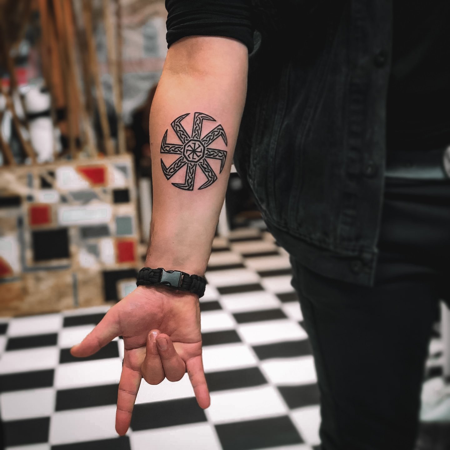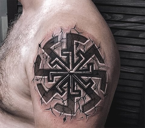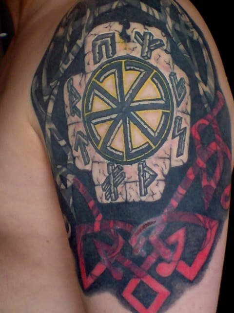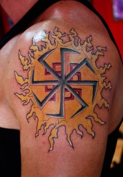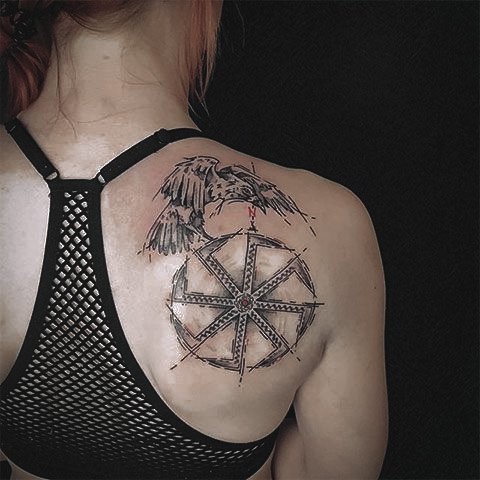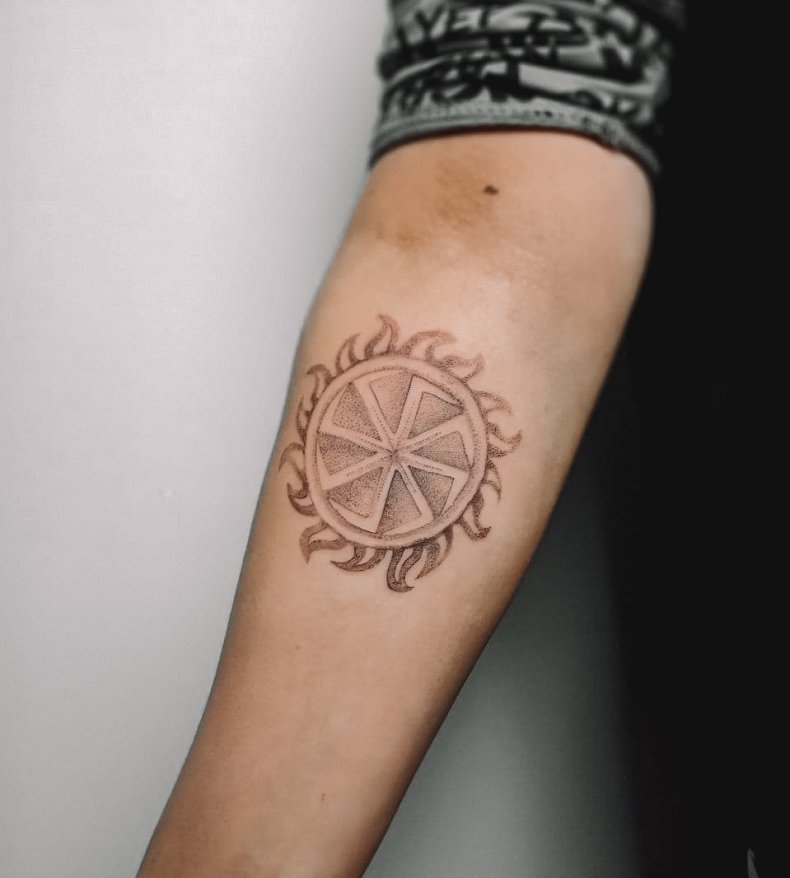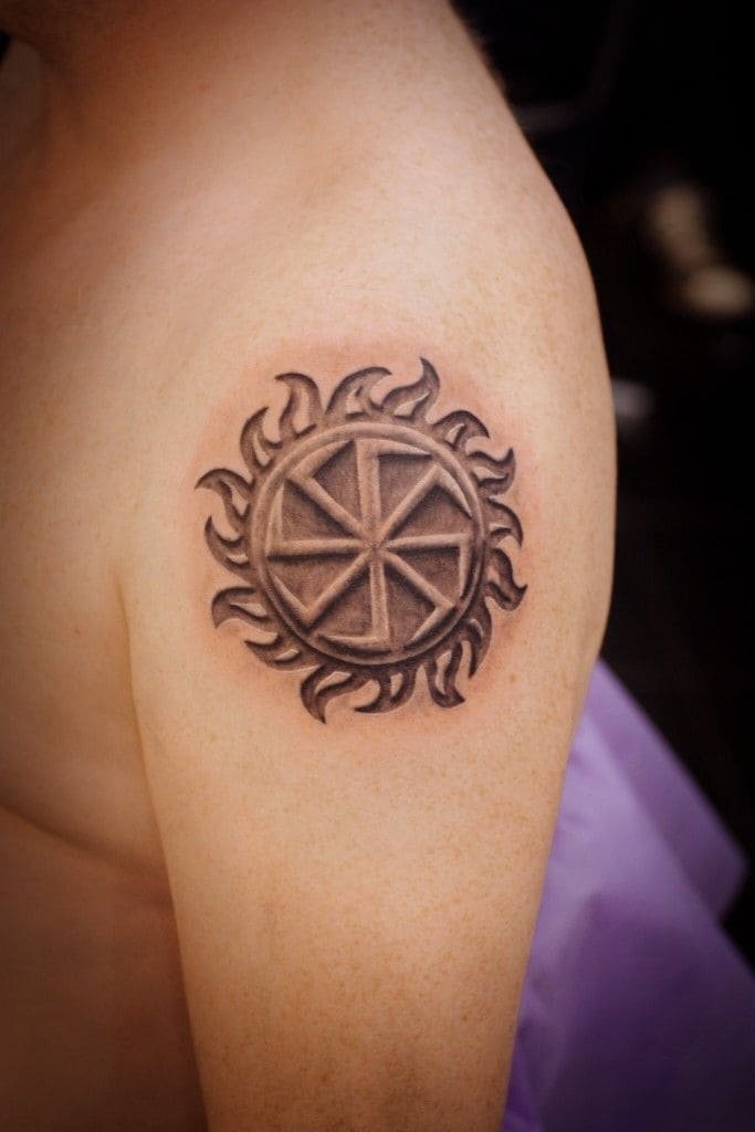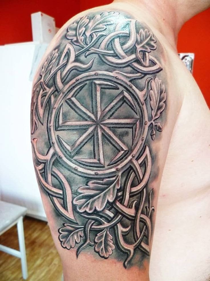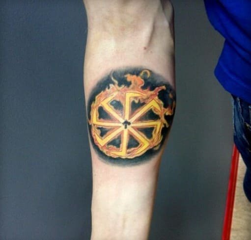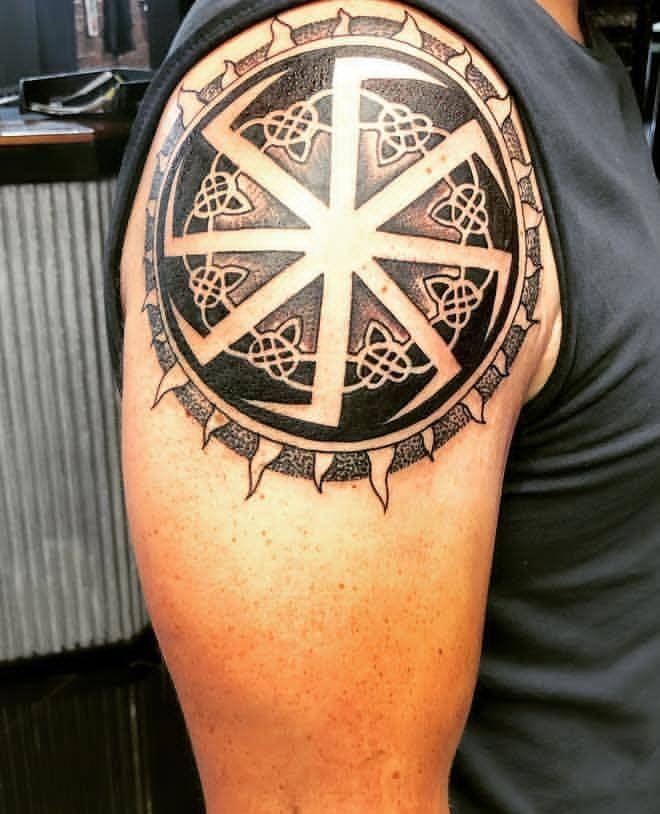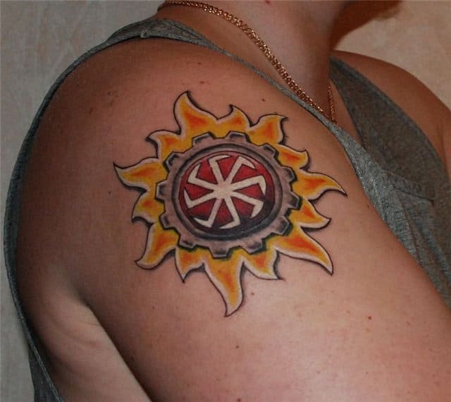 Часто тату коловрата використовують як оберіг, який не тільки оберігає свого володаря, але й допомагає йому долати труднощі.