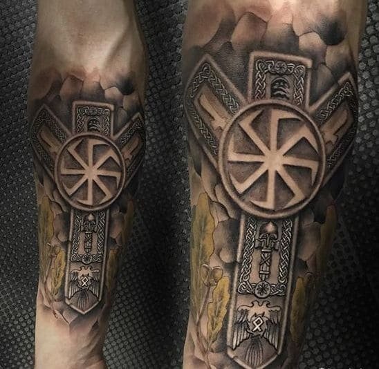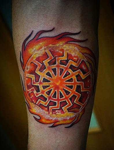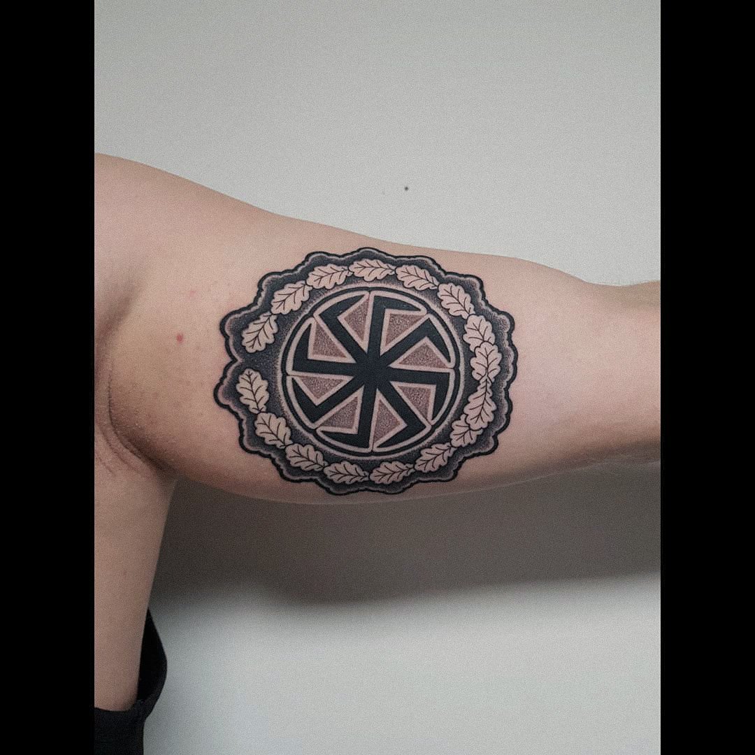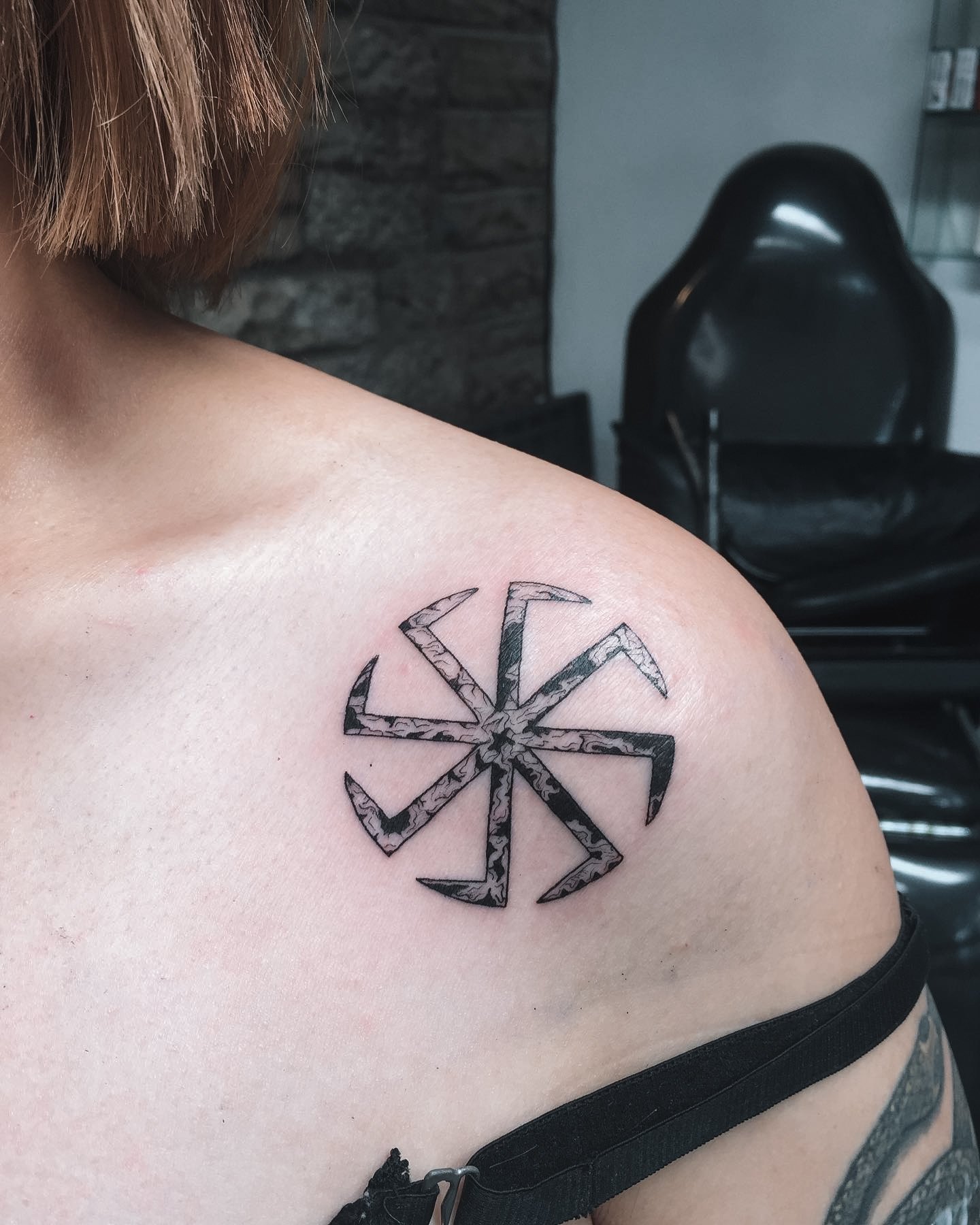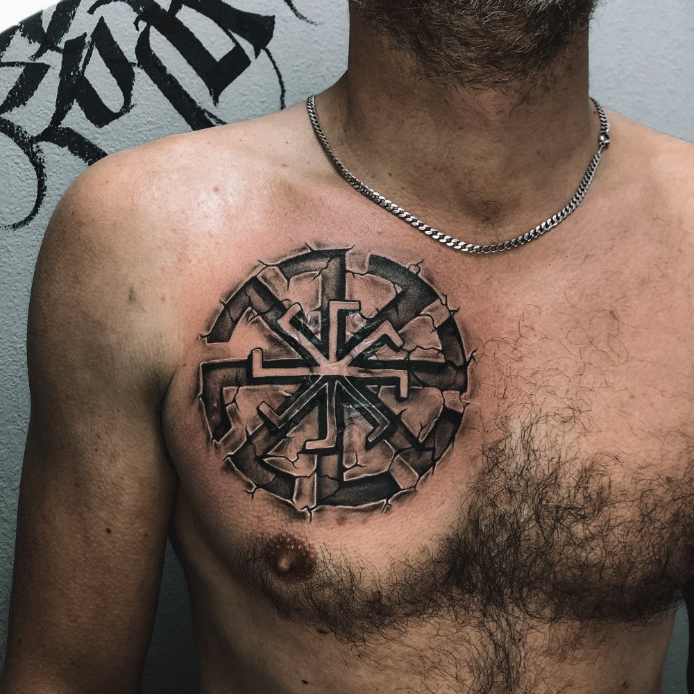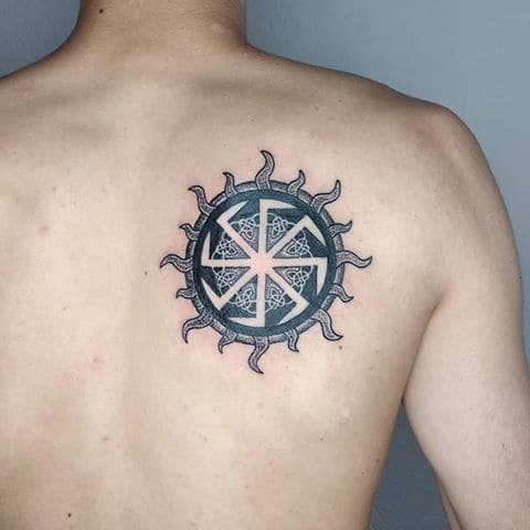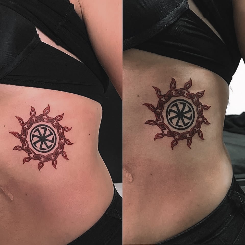 Часто тату коловрата використовують як оберіг, який не тільки оберігає свого володаря, але й допомагає йому долати труднощі.