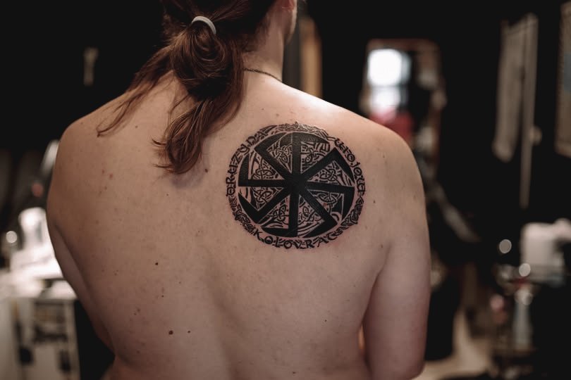 У сфері художнього татуювання чималий попит мають ескізи коловрата.