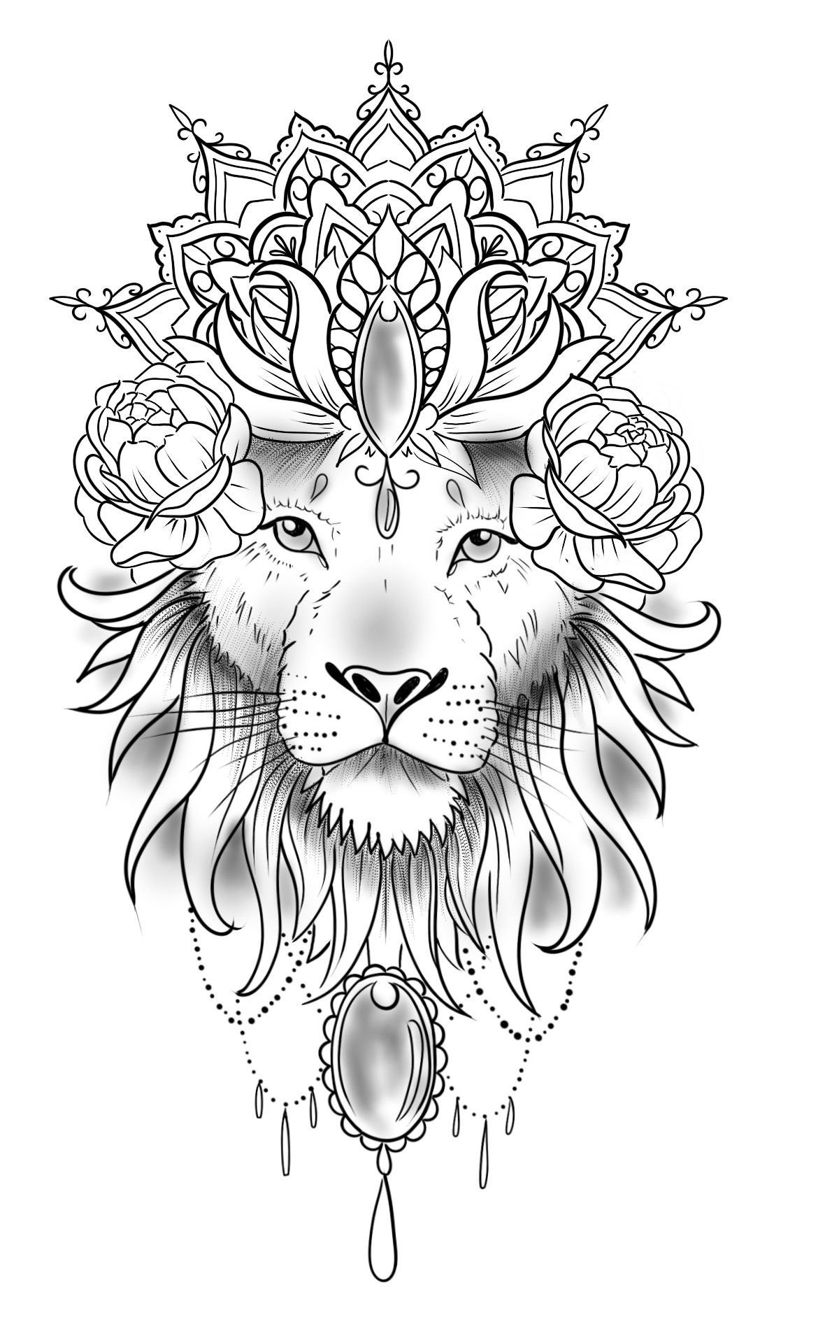 Варто так само враховувати на яку саме частину тіла Ви хочете нанести зображення лева, і в якому вигляді воно буде (голова тварини, половина лева або повноцінний силует).