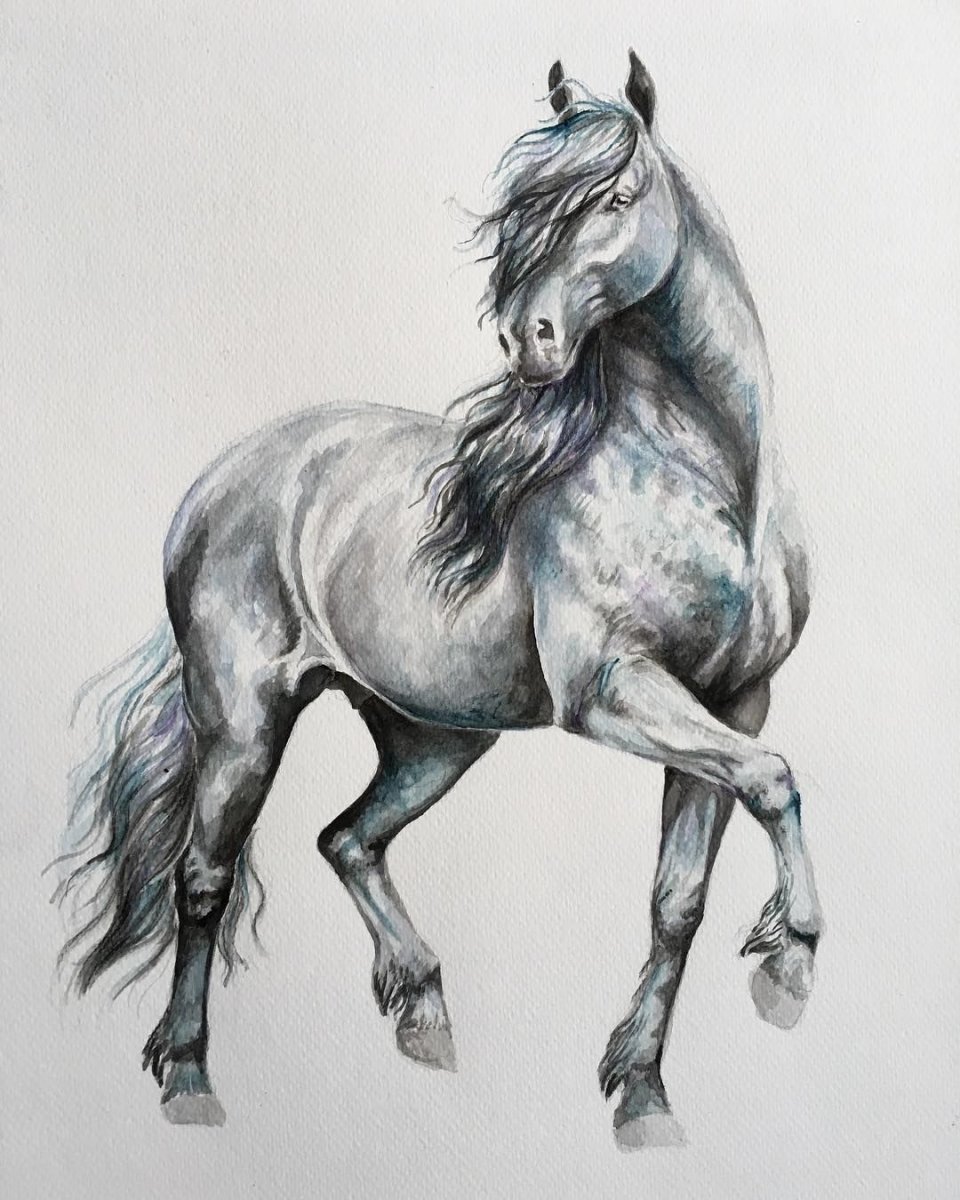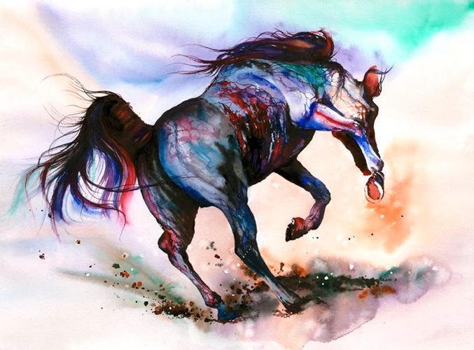 - Якщо кінь зображений у світлих тонах, значить зображення наповнене позитивною енергією. Часто такий скакун зображується в процесі бігу, з пишною гривою яка розвивається на вітрі.